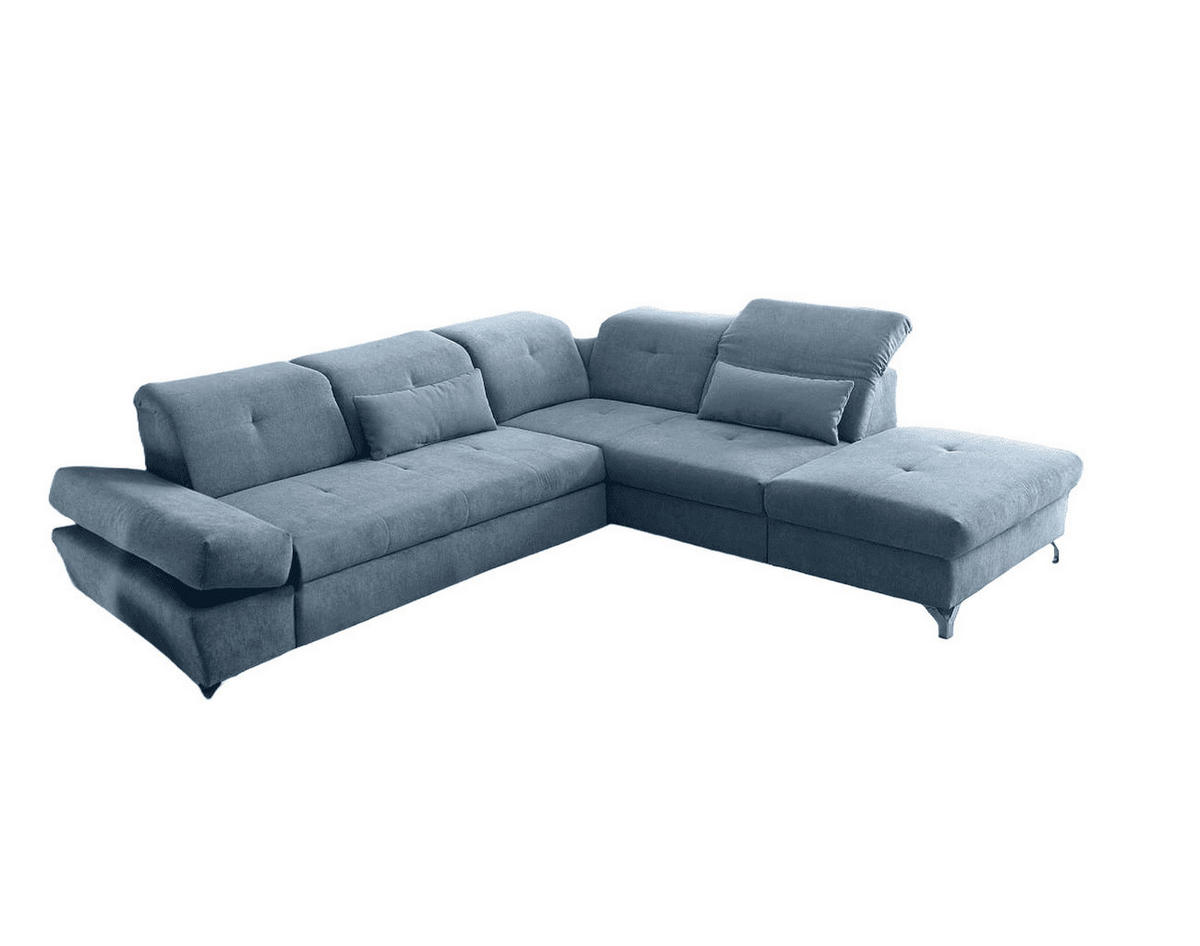 ECKSOFA mit Schlaffunktion und verstellbaren Kopflehnen - Chromfarben/Blau, Textil/Metall (245/275cm) - ed exciting design