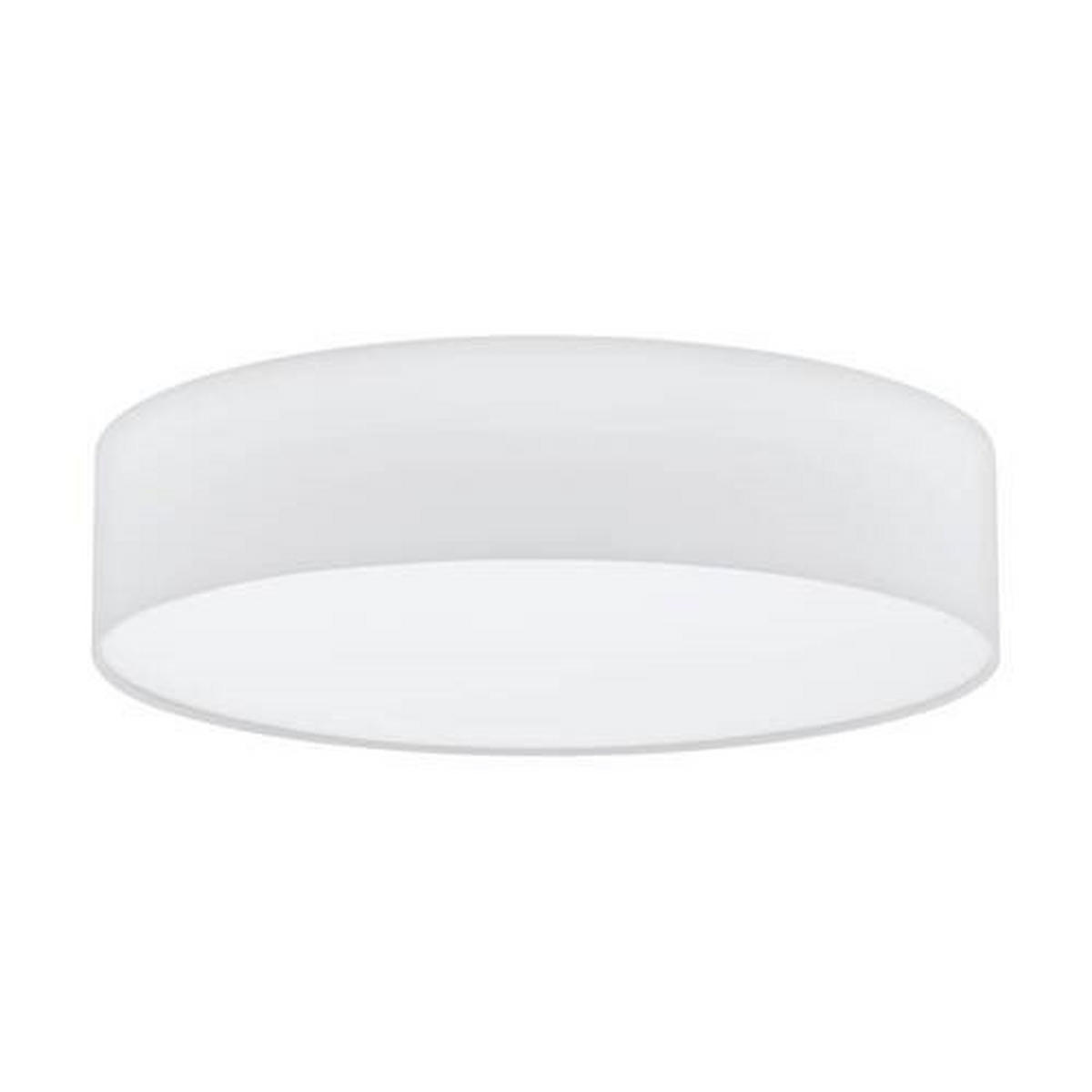 Diese Deckenleuchte in Weiß (rund) hat einen Durchmesser von ca. 57 cm und zeigt, wie sich mit der richtigen Beleuchtung die Ausstrahlung eines Raums verändern lässt. Ihr heller Schirm aus weißem Textil hat eine Höhe von ca. 15 cm und wird direkt an der Zimmerdecke montiert. Das lässt den Raum größer wirken, da der Blick in Kopfhöhe frei bleibt.