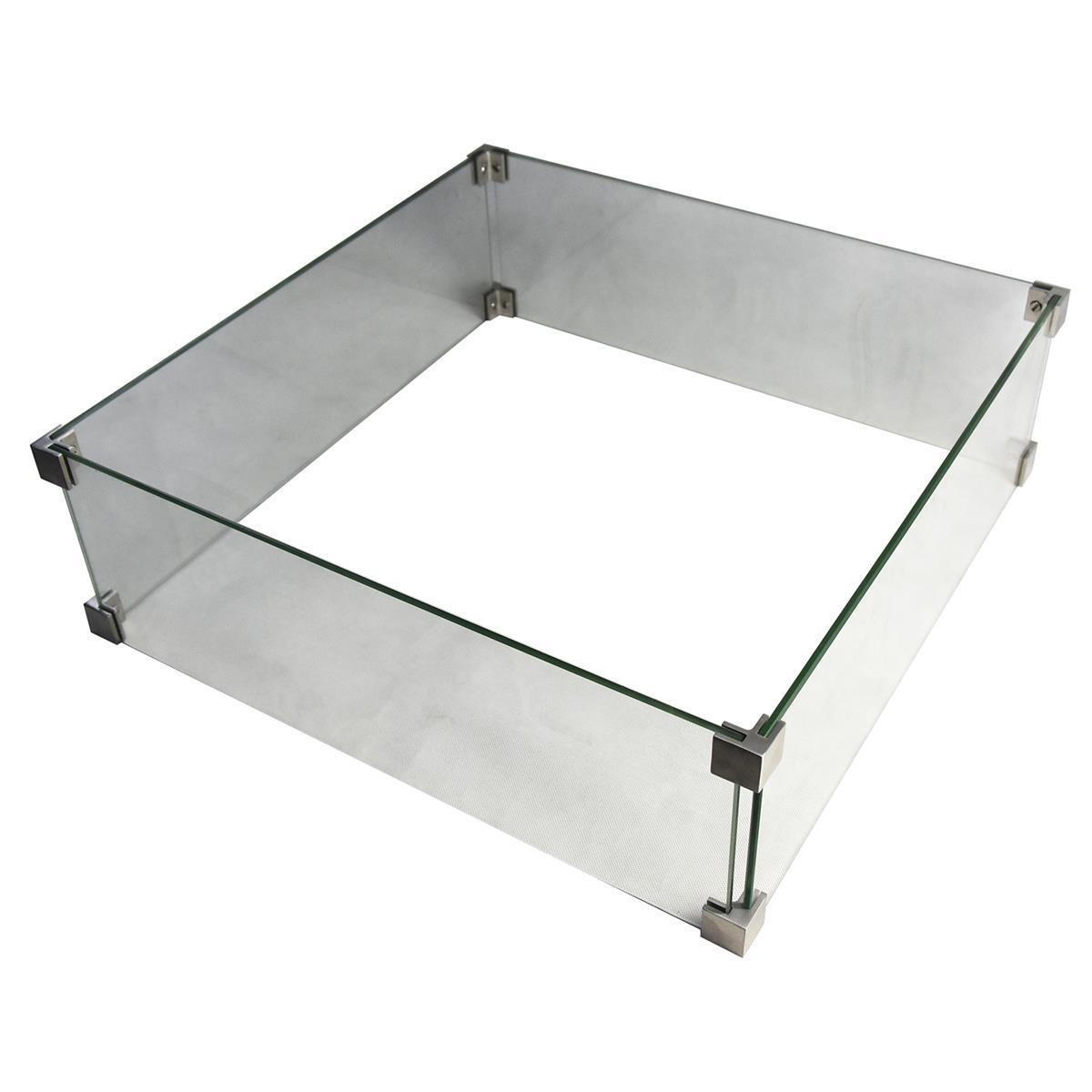 Dekorative Glasumrandung als Feuer- und Windschutz viereckig