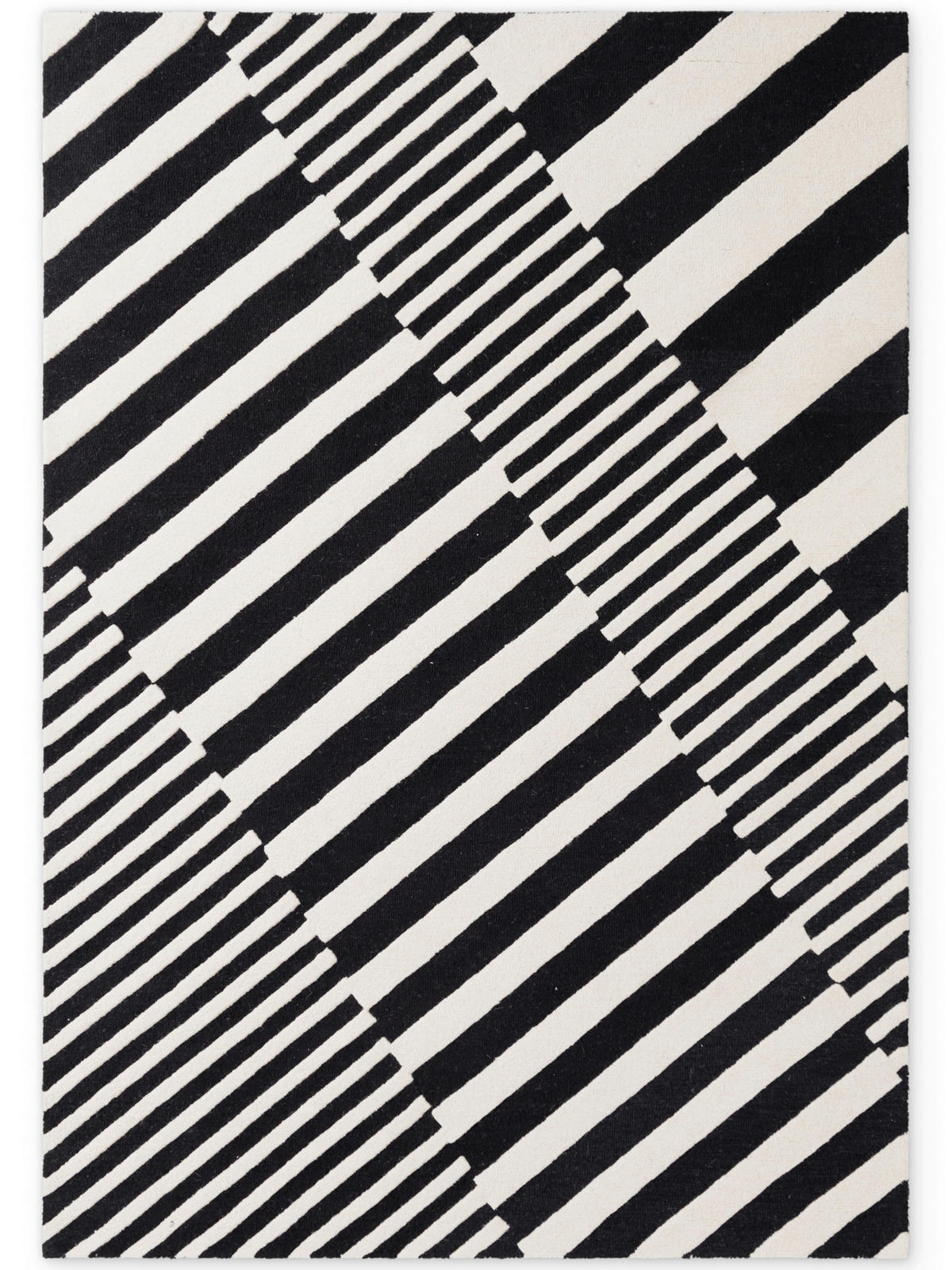 Dieser rechteckige ELLE DECORATION Wollteppich (B x L: ca. 120 x 180 cm) in Schwarz und Weiß richtet den Fokus handgewebt auf Wohnlichkeit. Durch