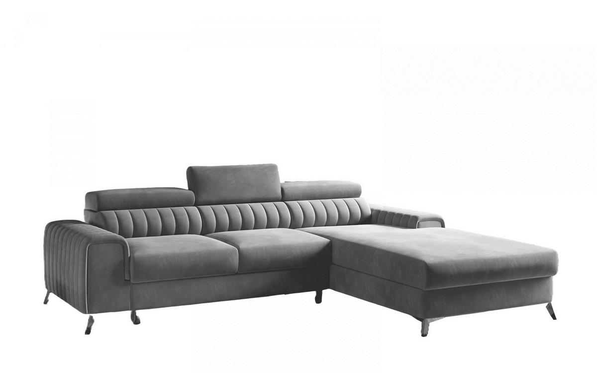 Ecksofa mit Schlaffunktion und Bettkasten – Bequem, modern und funktional Dieses moderne Ecksofa vereint großzügigen Komfort mit durchdachter Funktionalität. Die L-Form mit einer Länge von 278 cm und einer Tiefe von 205 cm bietet viel Platz für entspannte Stunden im Wohnzimmer. Verstellbare Kopfstützen sorgen für individuellen Sitzkomfort und unterstreichen das klare, zeitgemäße Design.