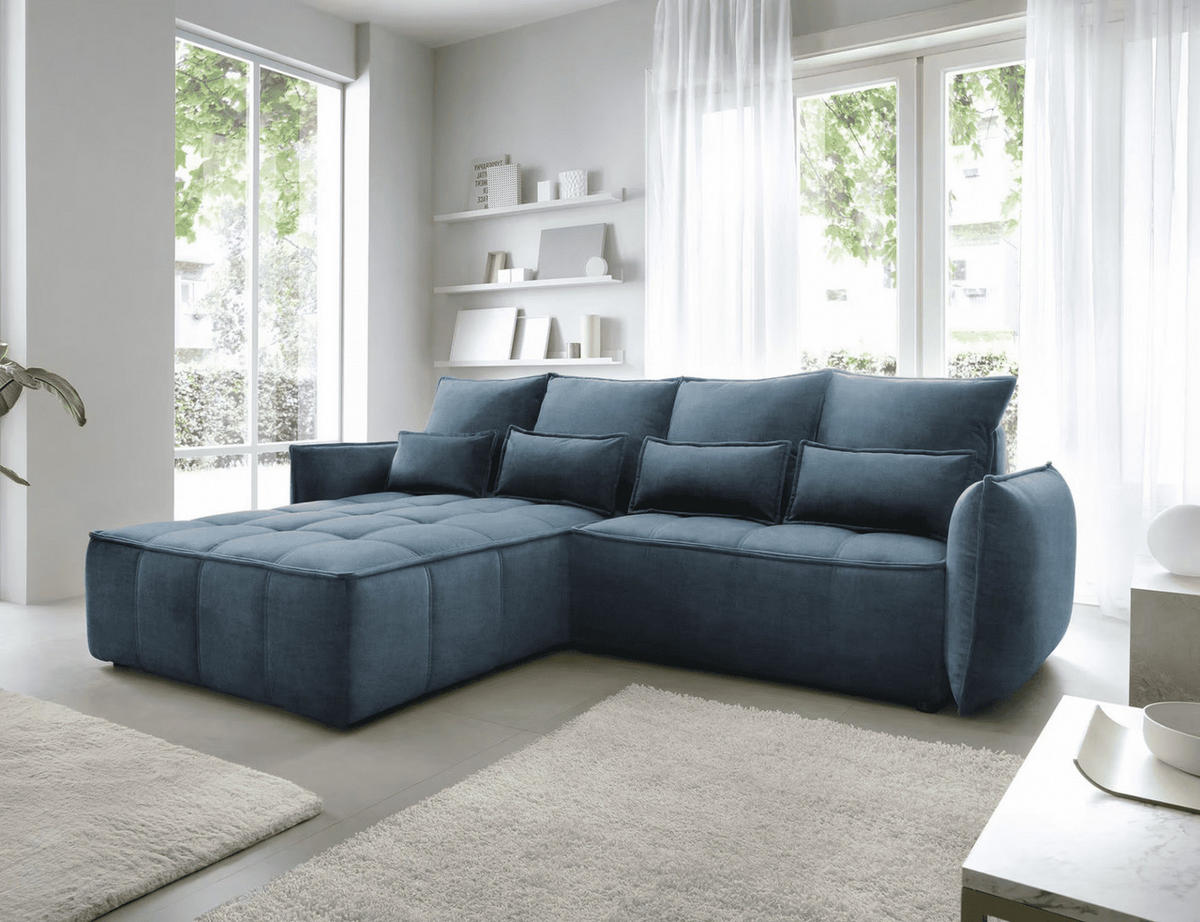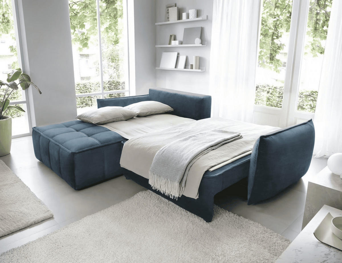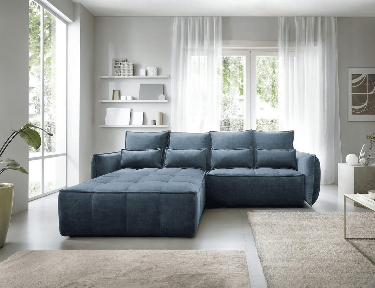 ECKSOFA mit Schlaffunktion und Bettkasten - Dunkelblau, Textil (265/196cm) - EltapEltap