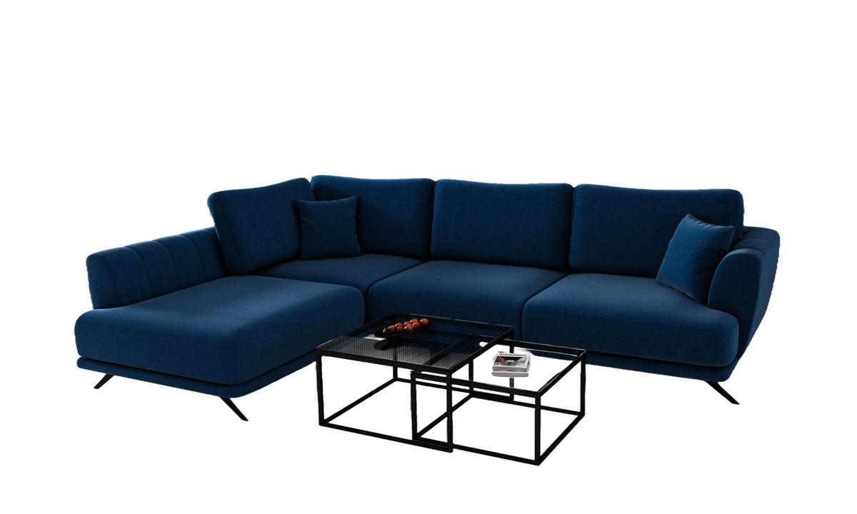 ECKSOFA mit Schlaffunktion und Bettkasten, Lukso-Stoff - Schwarz/Dunkelblau, Textil/Metall (276/191cm) - Eltap