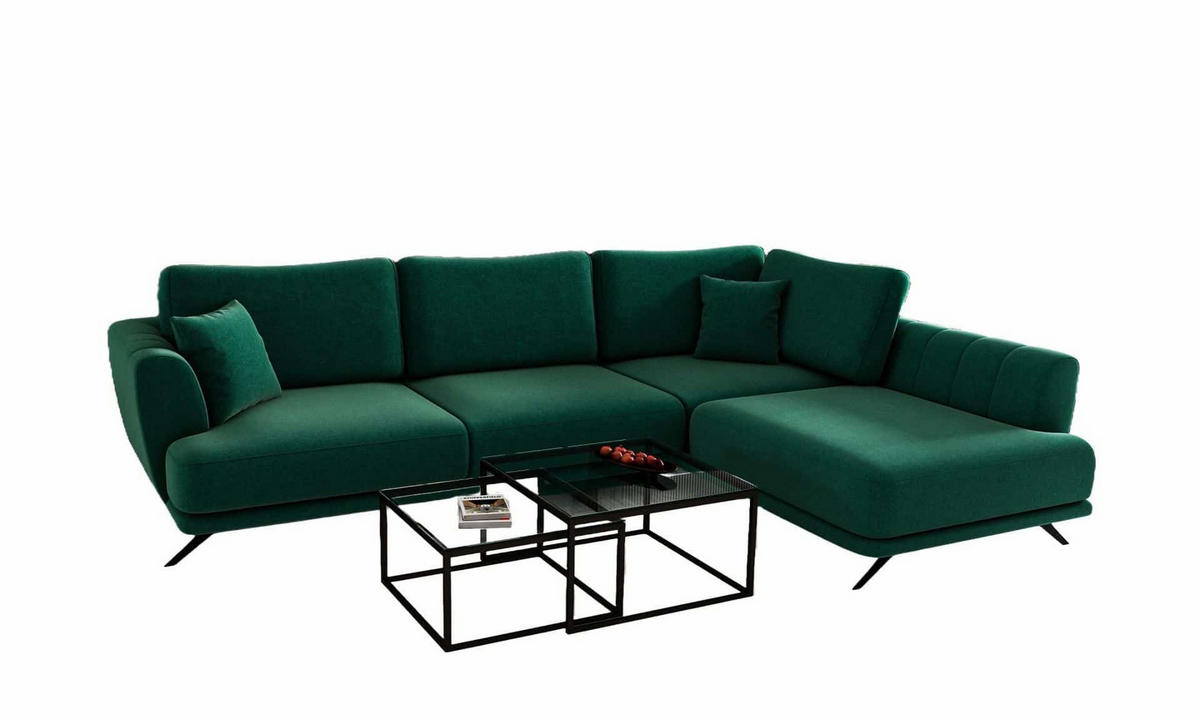 ECKSOFA mit Schlaffunktion und Bettkasten, Lukso-Stoff - Dunkelgrün/Schwarz, Textil/Metall (191/276cm) - Eltap