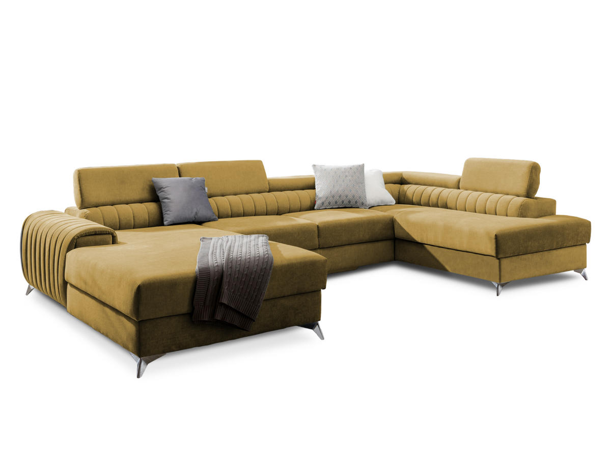 Wohnlandschaft mit Schlaffunktion – stilvoll, funktional, komfortabelDiese moderne Wohnlandschaft kombiniert elegantes Design mit durchdachter Funktionalität und bietet alles, was ein gemütliches Wohnzimmer braucht. Klare Linien, ein markantes Gehäuse und stilvolle Stahl-Chrom-Beine (Höhe: 9 cm) verleihen dem Möbelstück einen zeitgemäßen Look und machen es zum Blickfang jeder Einrichtung.
