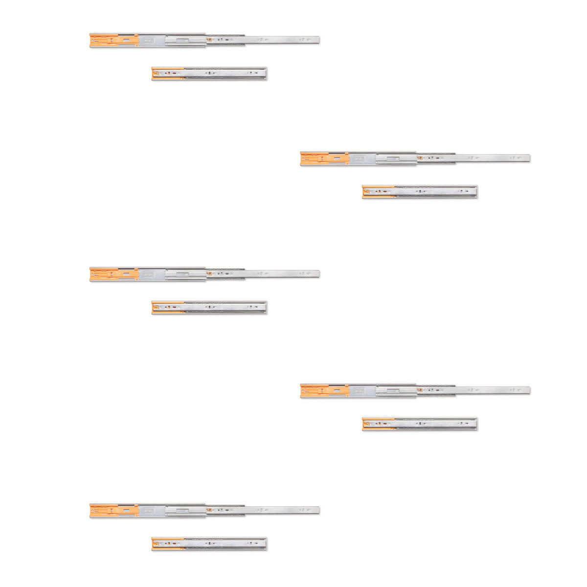Diese Führungen mit Vollauszug der Schublade, schließen dank ihres Stoppers sanft und bewegen sich dank der hochwertigen Kugellager sanft und leise. Zudem bestechen sie durch ihre enorme Traglast von bis zu 35 kg pro Schublade. Die Anbringung an der Schublade erfolgt durch Schrauben, abgenommen werden sie durch einen Hebel an der Führung.