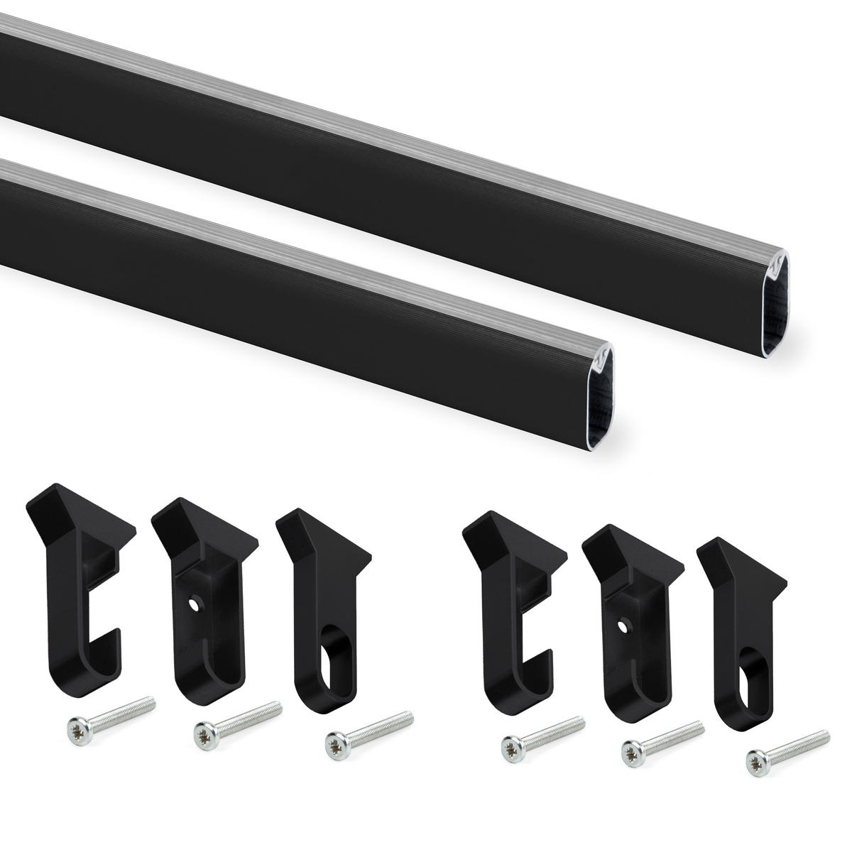EMUCA SCHRANKSCHIENEN Silk, 1,15m mit Halterungen, Aluminium und Kunststoff, Schwarz lackiert 2er-set