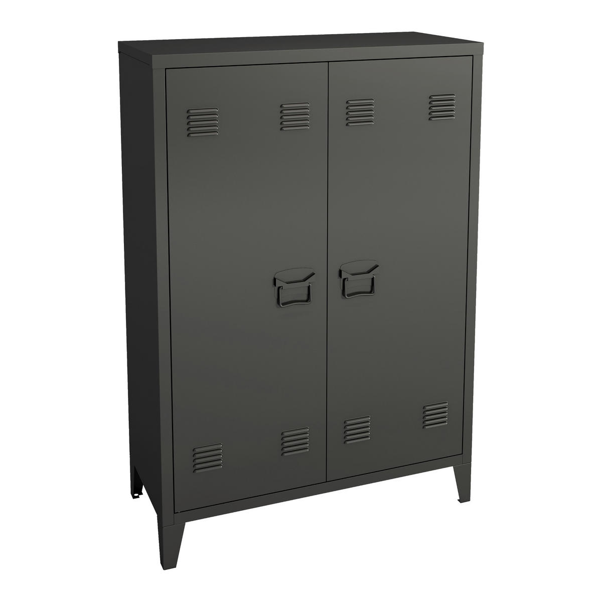 Das zeitlose Design des Schranks fügt sich nahtlos in jede Büro- oder Werkstatteinrichtung ein. Die robusten Handgriffe der Türen sorgen für eine einfache Handhabung.