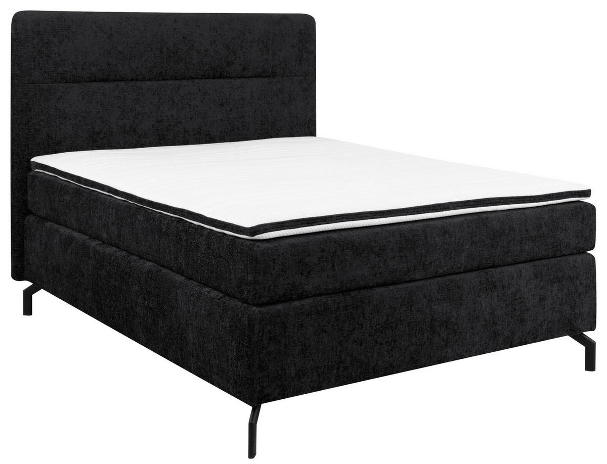 Metall schaffen Bodenfreiheit und perfektionieren stimmig das Design. Relax-Mode on: Entdecken Sie, wie sich erholsamer Schlaf wirklich anfühlt, mit diesem Boxspringbett (ca. 140 x 200 cm) in Schwarz inklusive Topper und gepolstertem Kopfteil!