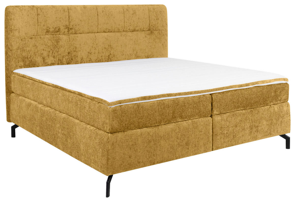 Schwarz, deren Höhe zudem eine Belüftung von unten ermöglicht. Ihr neues Boxspringbett (ca. 180 x 200 cm) in Currygelb mit Topper und gepolstertem Kopfteil verführt dazu, eine gemütliche Auszeit zu genießen!