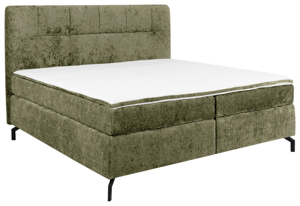 Schwarz das Design. Dieses Boxspringbett (ca. 180 x 200 cm) in Grün mit Topper und gepolstertem Kopfteil ist der Inbegriff von Relax-Luxury!