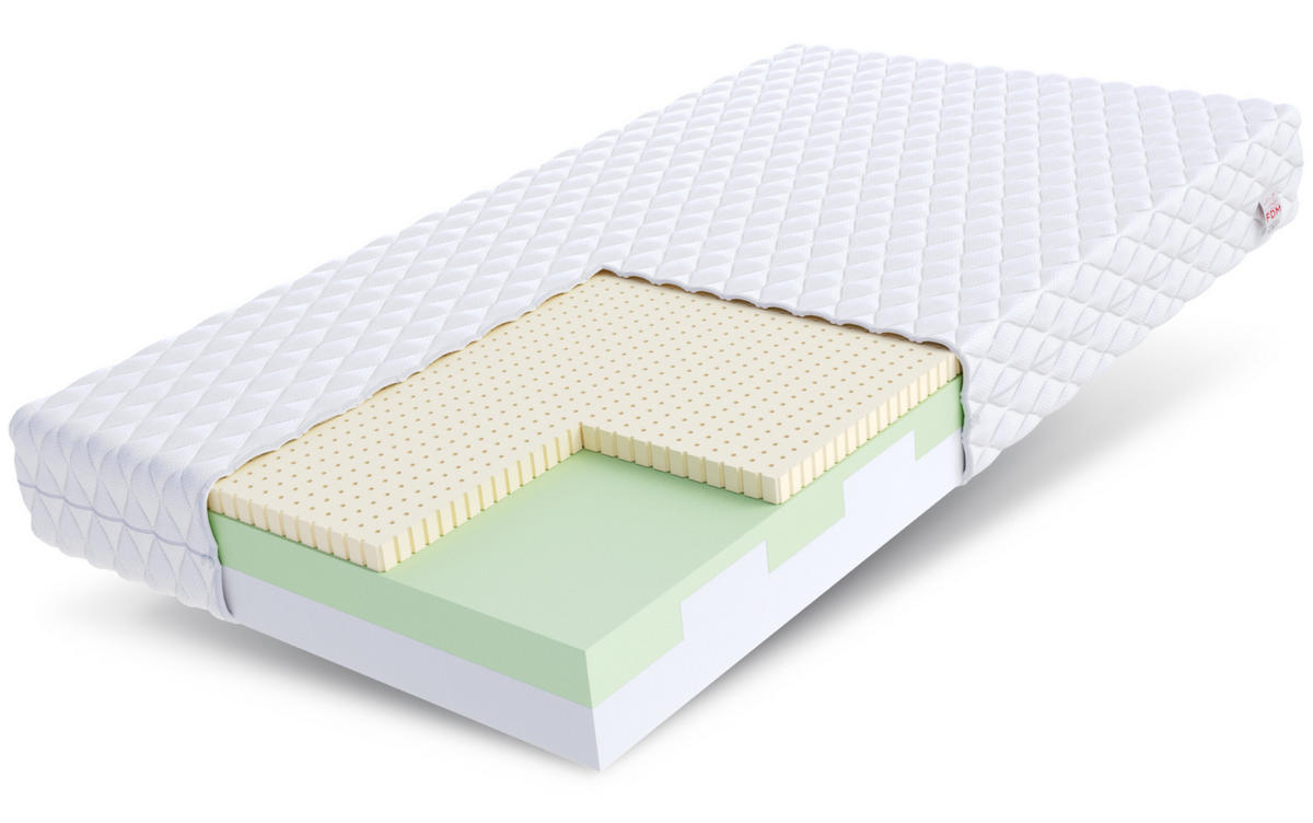 Latex hat ein breites Spektrum von antiallergischen Eigenschaften, verhindert die Entwicklung von Schimmel, Milben und Pilzen. Latex zeichnet sich durch eine hohe Elastizität aus. Es ist ein haltbares und verschleißfestes Material und kann viele Jahre lang ohne sichtbare Veränderungen in seiner Struktur verwendet werden. Die Schicht aus perforiertem Latex passt sich der Körperform an und sorgt für eine effiziente Belüftung im Schlaf. Jedes Mal, wenn Sie sich drehen oder bewegen, wird die Latexschicht komprimiert und expandiert, wodurch die internen Kanäle Luft transportieren.