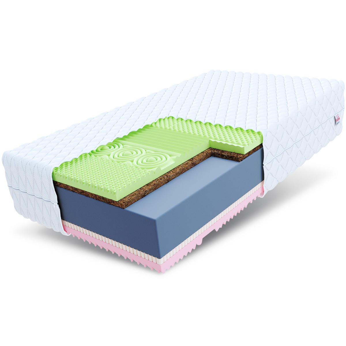 Kokosfasern sind sehr widerstandsfähig gegen mikrobielle Fäulnisprozesse und gegen Feuchtigkeit, bieten keinen Nährboden für Mikroorganismen, wirkt wärmeisolierend und schalldämpfend, sehr strapazierbar, wirkt feuchteregulierend, erhöht Härtegrad der Matratze. Besonders empfehlenswert für Allergiker.