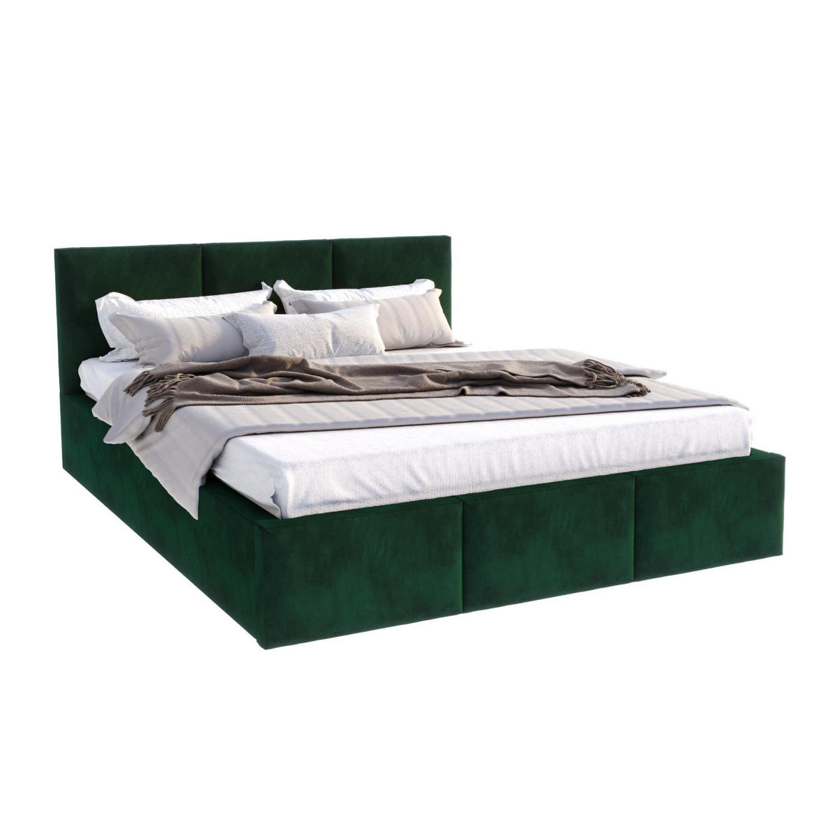 POLSTERBETT AMBER - Dunkelgrün/Birkefarben, Holz/Holzwerkstoff (140/200cm) - FDM