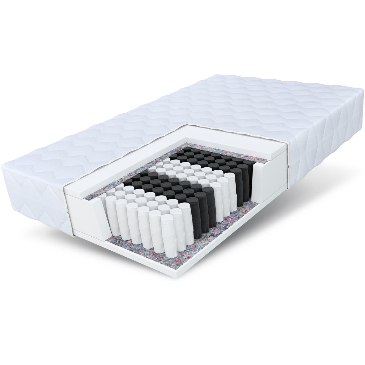 Jede Feder ist separat in einer Stofftasche eingenäht und ist ca. 30% gedehnt, so wird das Risiko des Zusammenbruchs vermieden. Es besteht keine Verbindung zwischen den Federn, der Vorteil ist, dass jede von ihnen unabhängig von der anderen arbeiten kann. Im Vergleich zu konventionellen Matratzen mit Federkern sind die Matratzen mit Taschenfederkern für zwei Personen bestens geeignet.