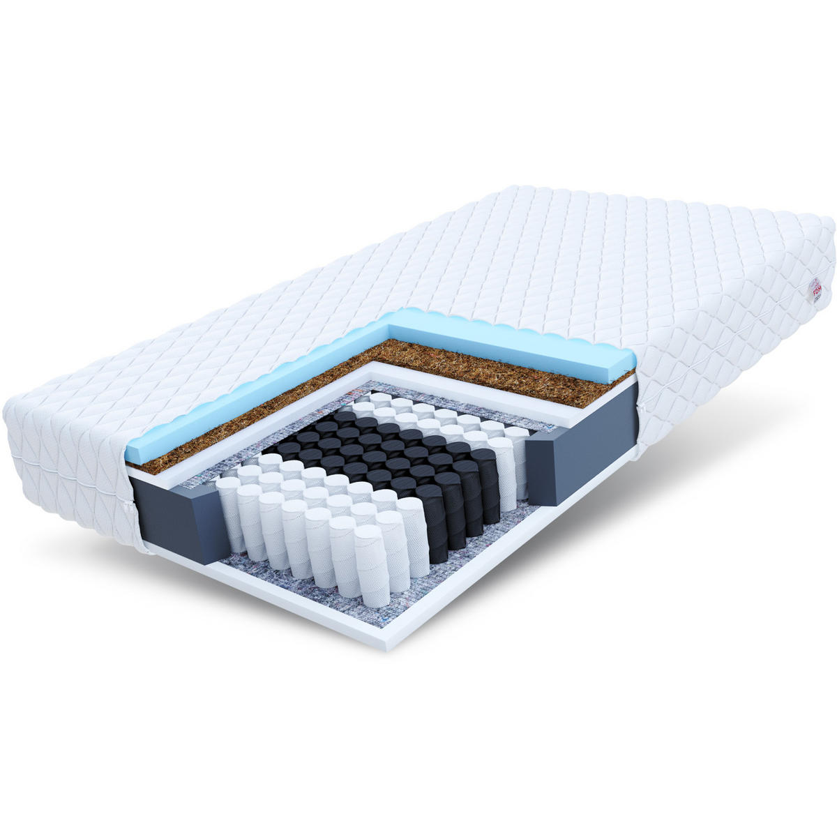 Kokosfasern sind ein natürlicher Rohstoff, der für die Einlegesohle vieler Matratzen verwendet wird. Sie wird aus den Schalen der Kokosnuss hergestellt und bildet eine Matte, die in die Matratze gelegt wird. Es hat einzigartige Eigenschaften wie Festigkeit, Elastizität und Leichtigkeit. Sie ist haltbar und sehr luftdurchlässig.