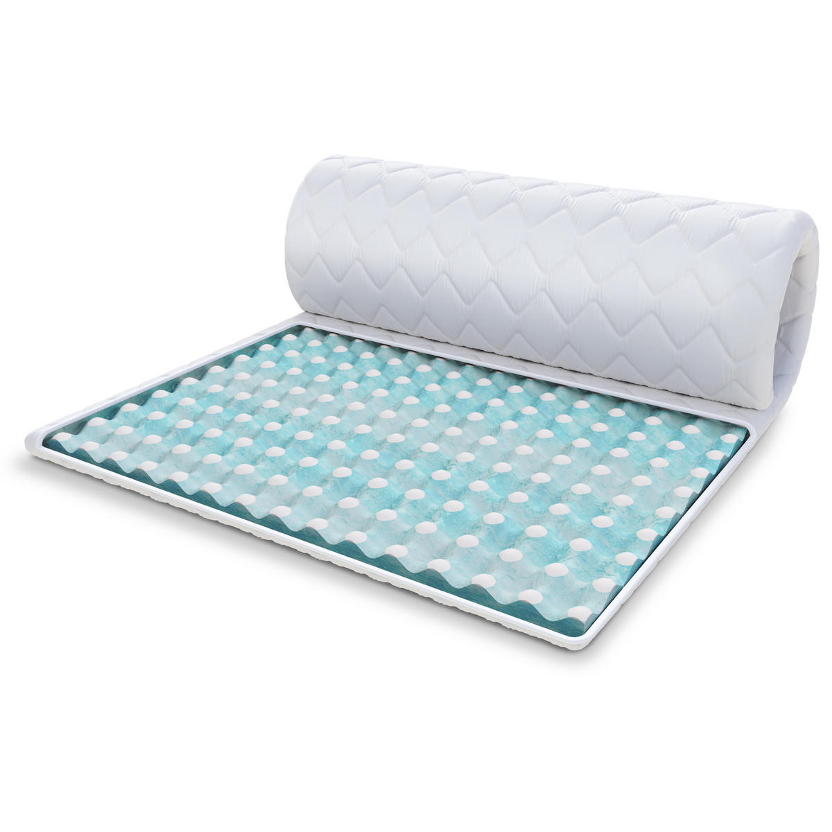 Der Topper lindert Rückenschmerzen. Durch das elastische Material wird das Körpergewicht des Schlafenden frei verteilt, wodurch die Wirbelsäule entlastet wird. Die doppelseitige Auflage besteht aus einem 3 cm hohen Revine Blue Block aus profiliertem Schaumstoff. Es ist eine spezielle Art von Polyurethanschaum, der widerstandsfähig gegen Verformungen ist. Gleichzeitig verliert er nichts von seiner Elastizität und Flexibilität. Der Schaum passt sich perfekt der Körperform an und ist verformungsbeständig.
