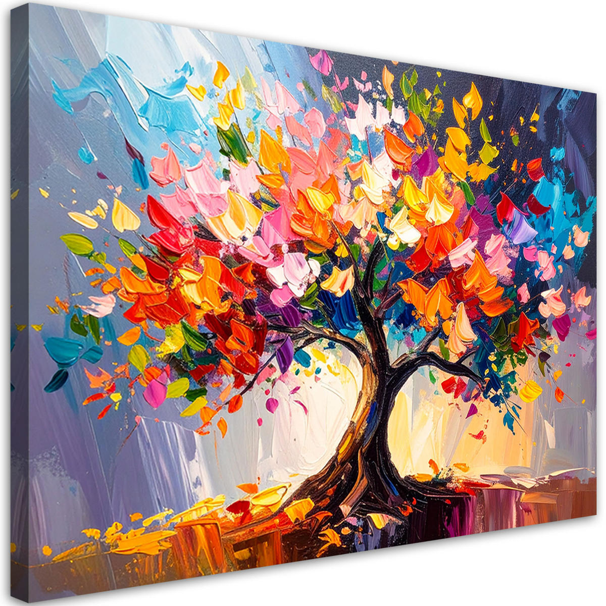 LEINWANDBILD 3D Bunter blühender Baum des Lebens 120x80cm - Multicolor, Textil (120/80cm) - FeebyFeeby