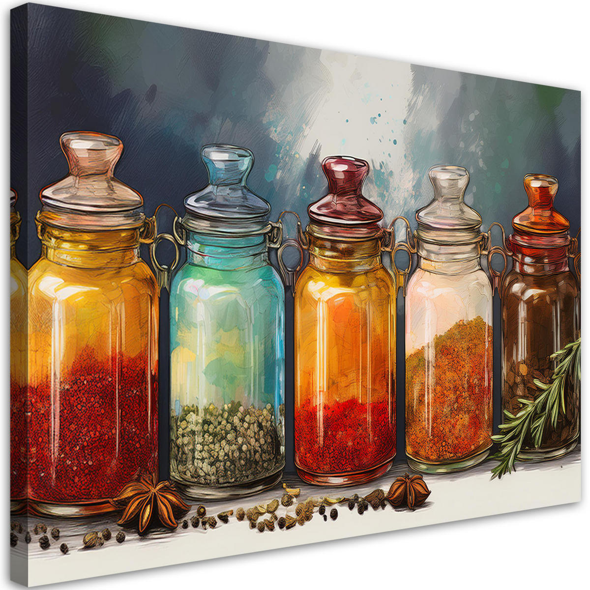 Feeby LEINWANDBILD Gewürze und Kräuter in Flaschen 90x60cm