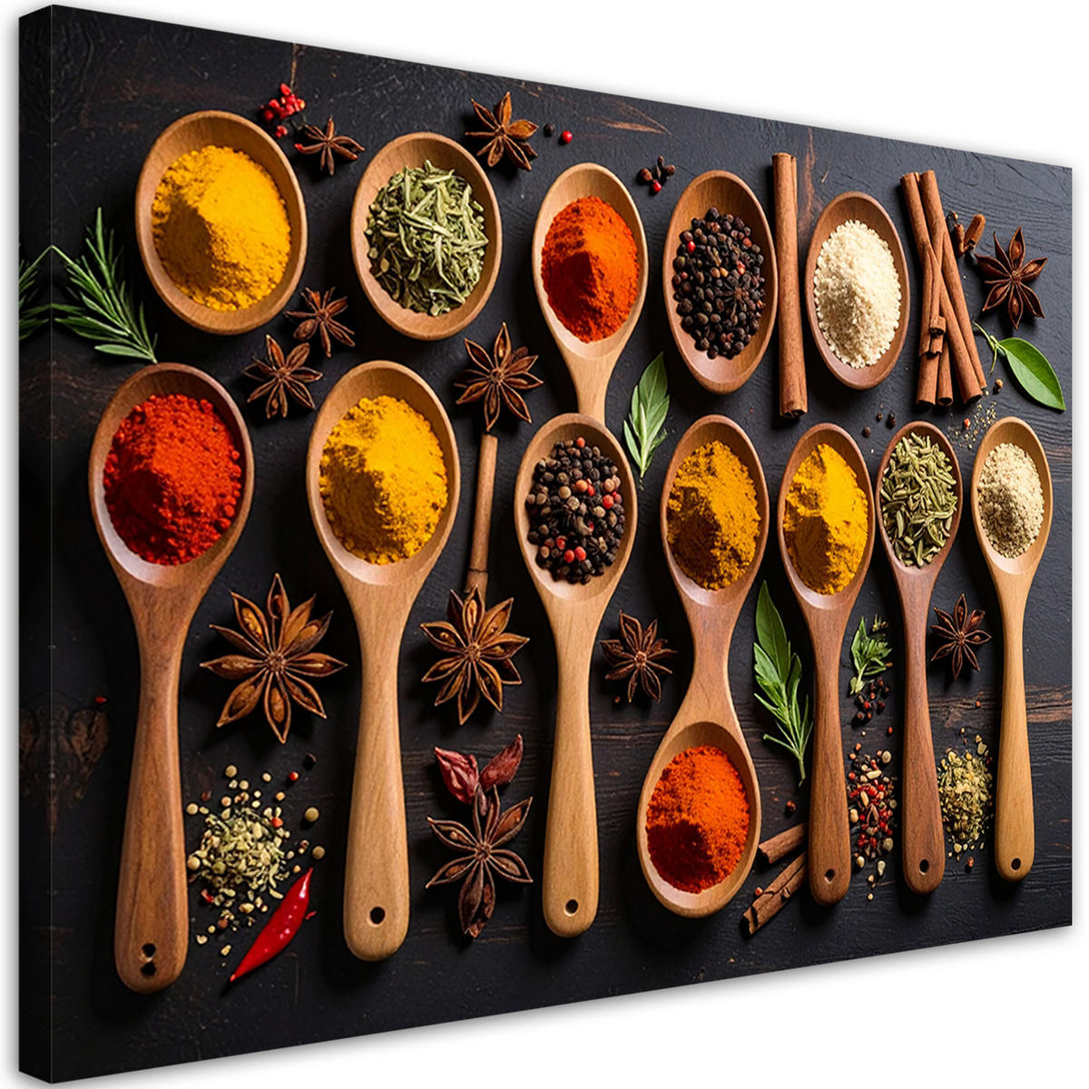 Feeby LEINWANDBILD Holzlöffel mit Gewürzen 60x40cm