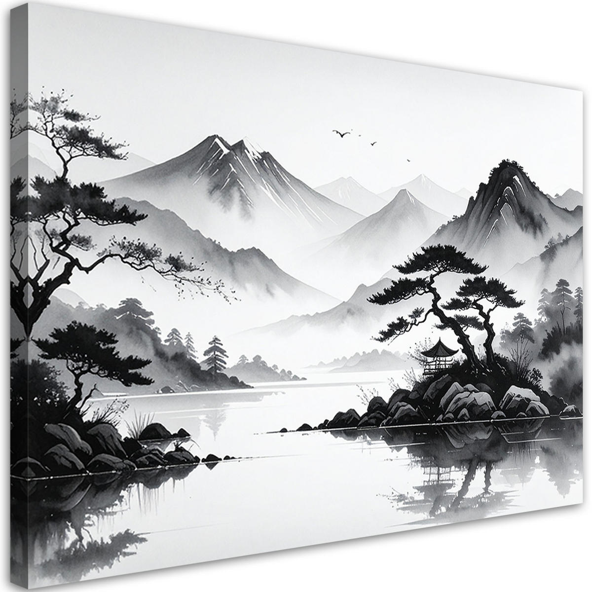 Feeby LEINWANDBILD Japanische Landschaft gemalt mit Tinte 120x80cm