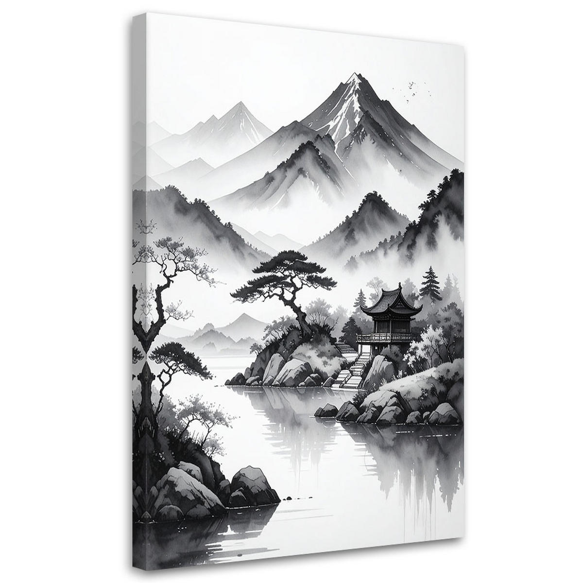 Feeby LEINWANDBILD Japanische Landschaft gemalt mit Tinte 40x60cm