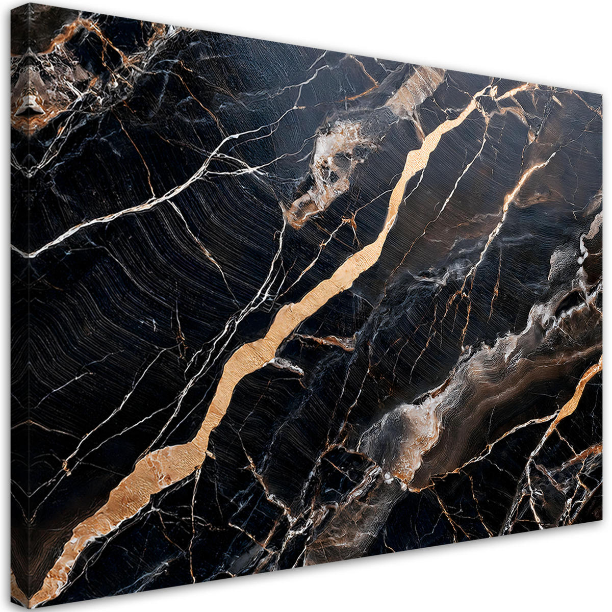 Feeby LEINWANDBILD Schwarzer Marmor mit goldener Abstraktion 90x60cm