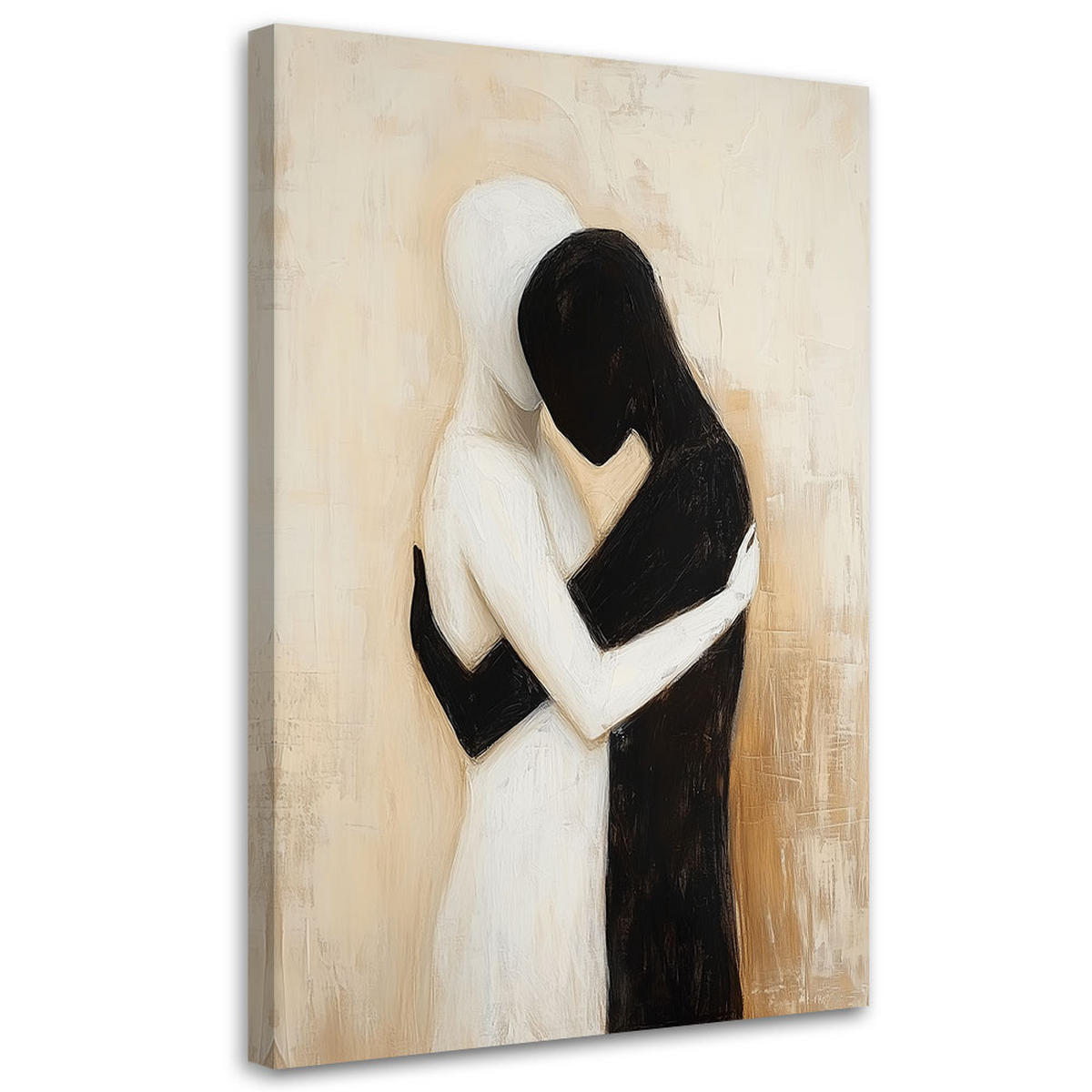 LEINWANDBILD Verliebtes Paar auf beigem Hintergrund 80x120cm - Schwarz, Textil (80/120cm) - FeebyFeeby