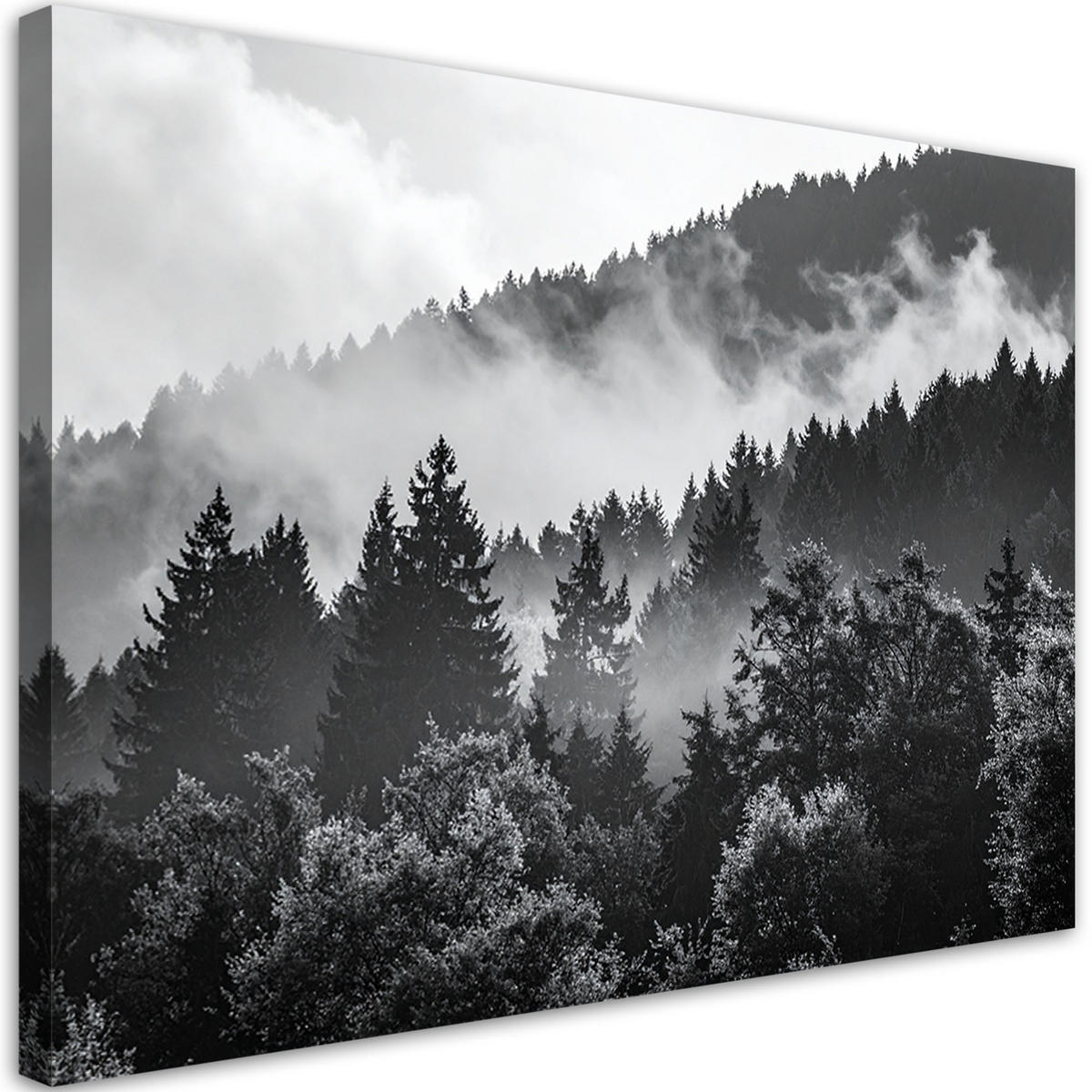 Feeby LEINWANDBILD Wald im Nebel schwarz-weiß 100x70cm