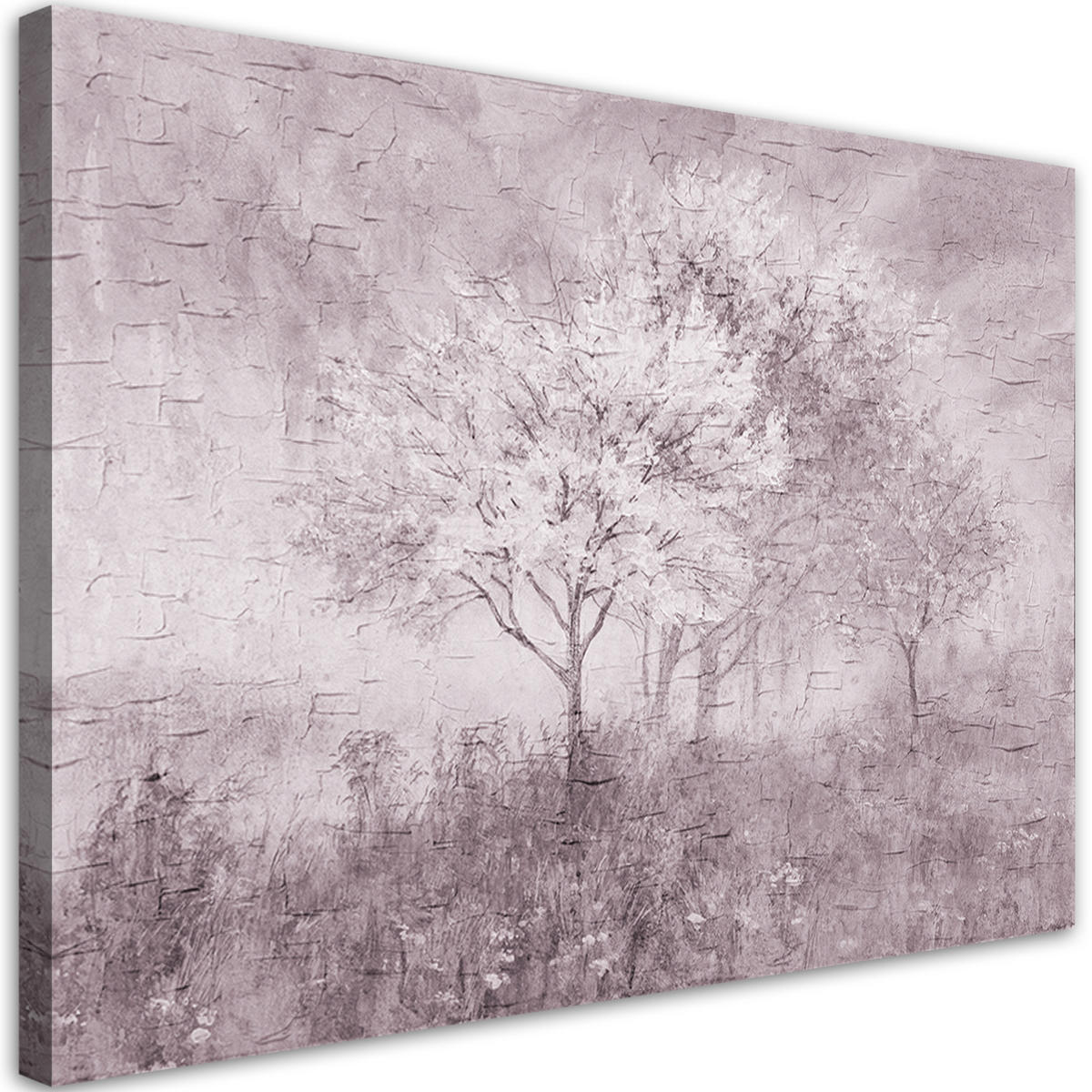 WANDBILD ein blühender baum in der wiese old schwarz und weiß - Schwarz, Textil (60/40cm) - FeebyFeeby