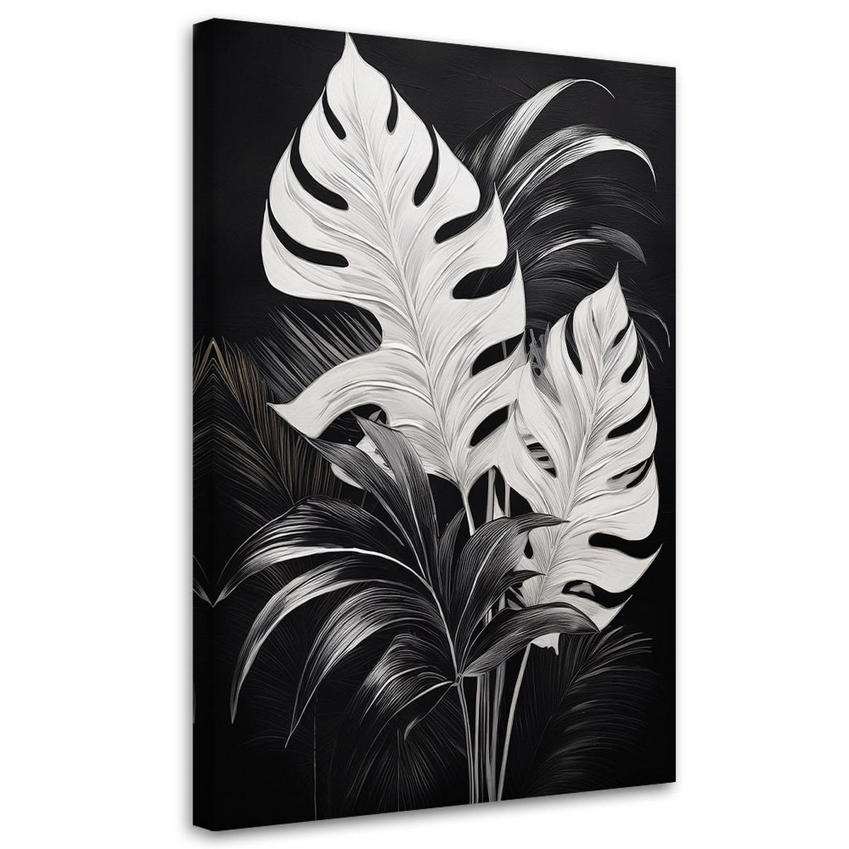 WANDBILD monstera verlässt black white loft - Schwarz, Textil (60/90cm) - FeebyFeeby