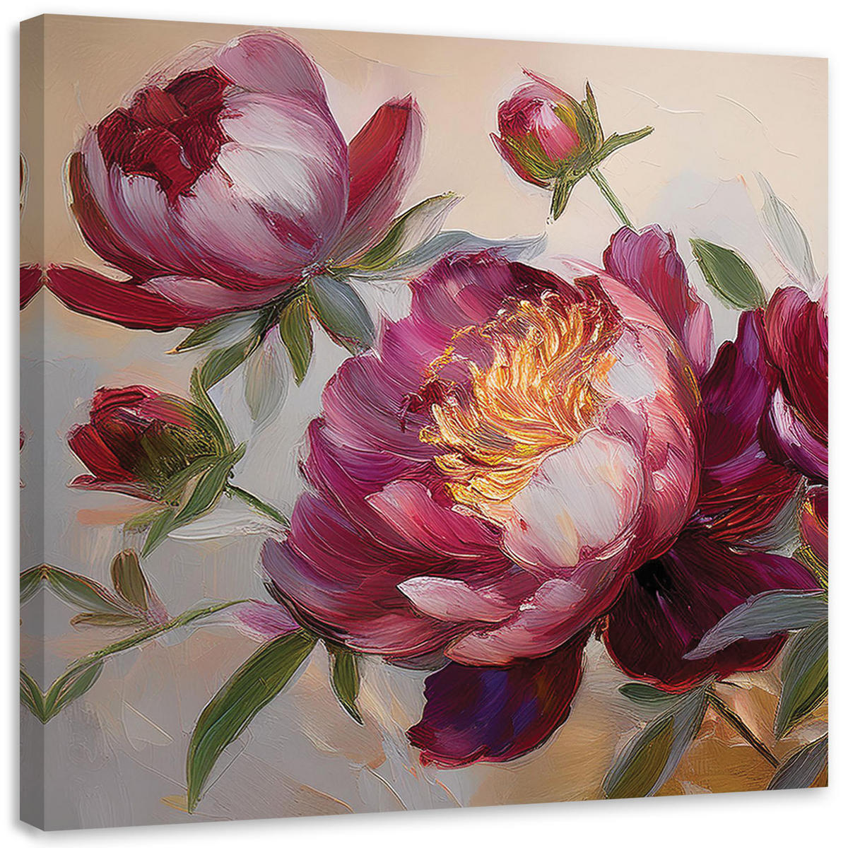 WANDBILD pfingstrosen blüht rote natur - Rot, Textil (50/50cm) - FeebyFeeby