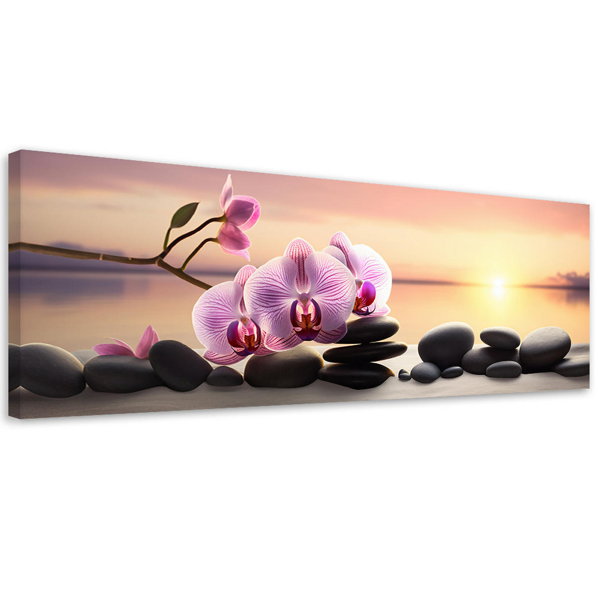 WANDBILD rosa orchidee und zen steine - Pink, Textil (90/30cm) - Feeby