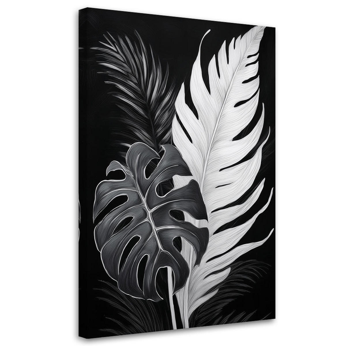 WANDBILD schwarz weiße monstera blätter - Schwarz, Textil (80/120cm) - Feeby