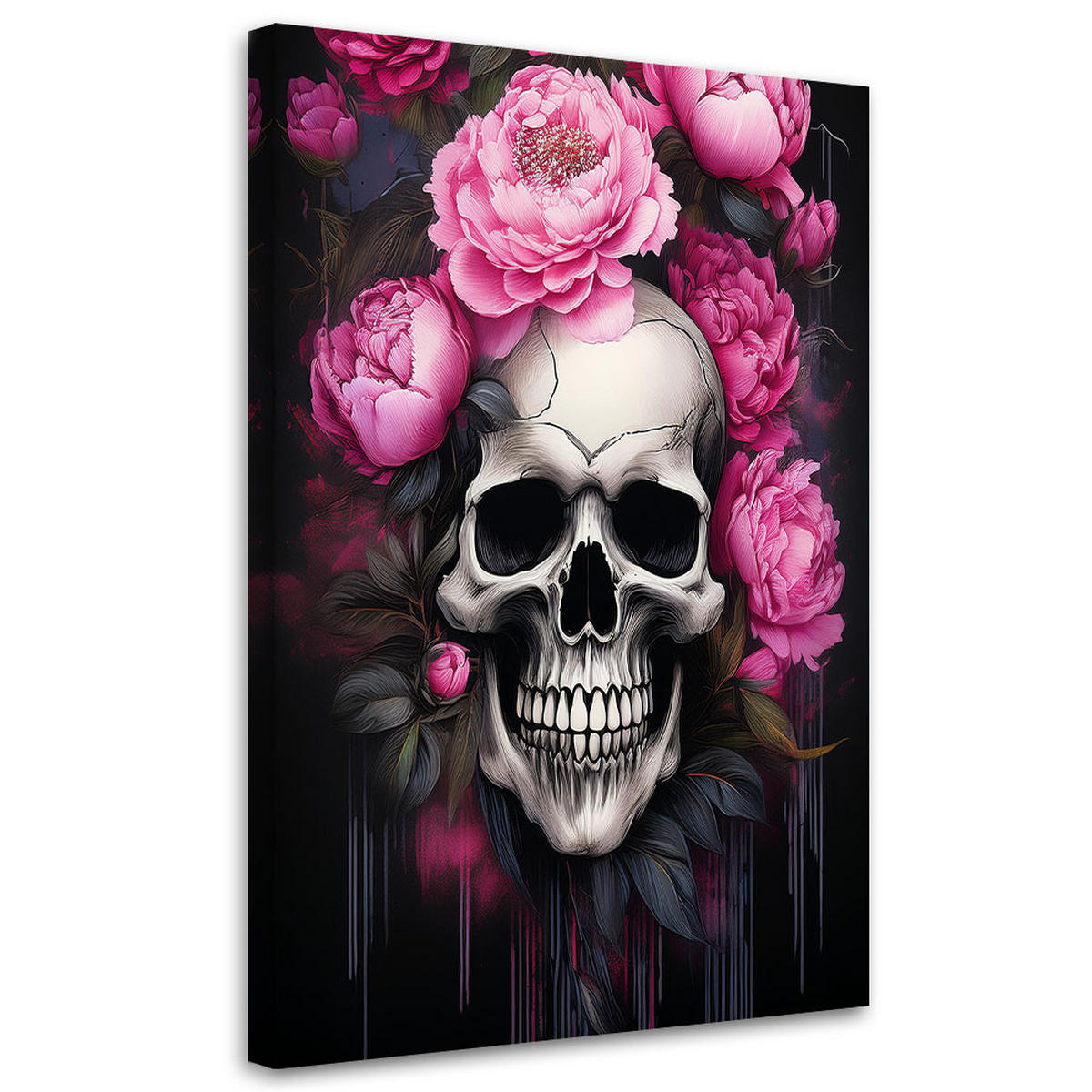 Feeby WANDBILD totenkopf rosa pfingstrosen blumen