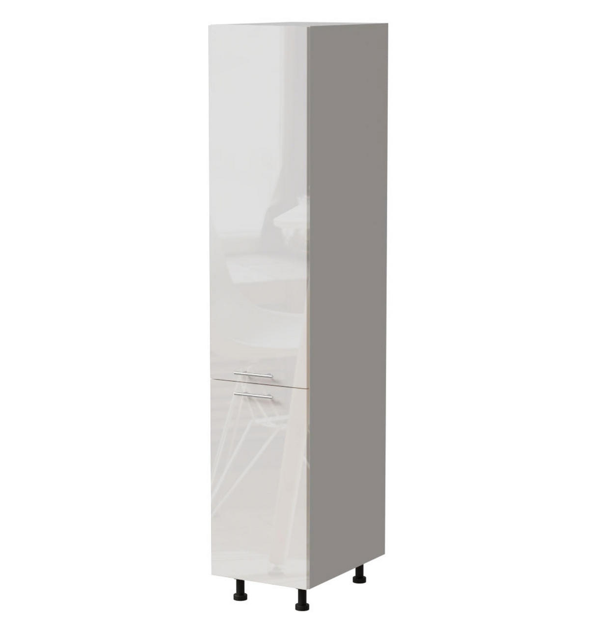 Der Schrank ist mit farbig passender Sockelleiste (Korpusfarbe) und regulierbaren Füßen ausgestattet.