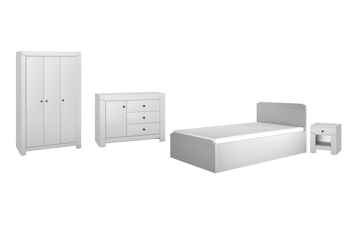 - Set bestehend aus: 1x Kleiderschrank, 1x Sideboard, 1x Bett mit Lattenrost, 1x Nachtkonsole