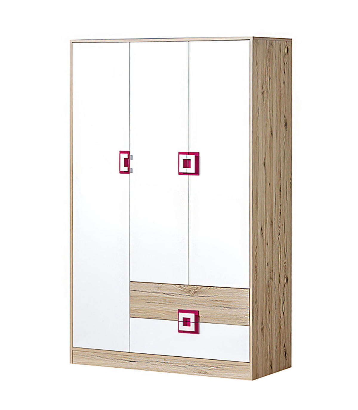 KLEIDERSCHRANK Nico 3 Eiche hell / Weiß-Farbapplikation Pink 120 / 50 / 190 cm - Hellbraun/Weiß, Holz/Holzwerkstoff (120/190/50cm) - Feldmann-WohnenFeldmann-Wohnen