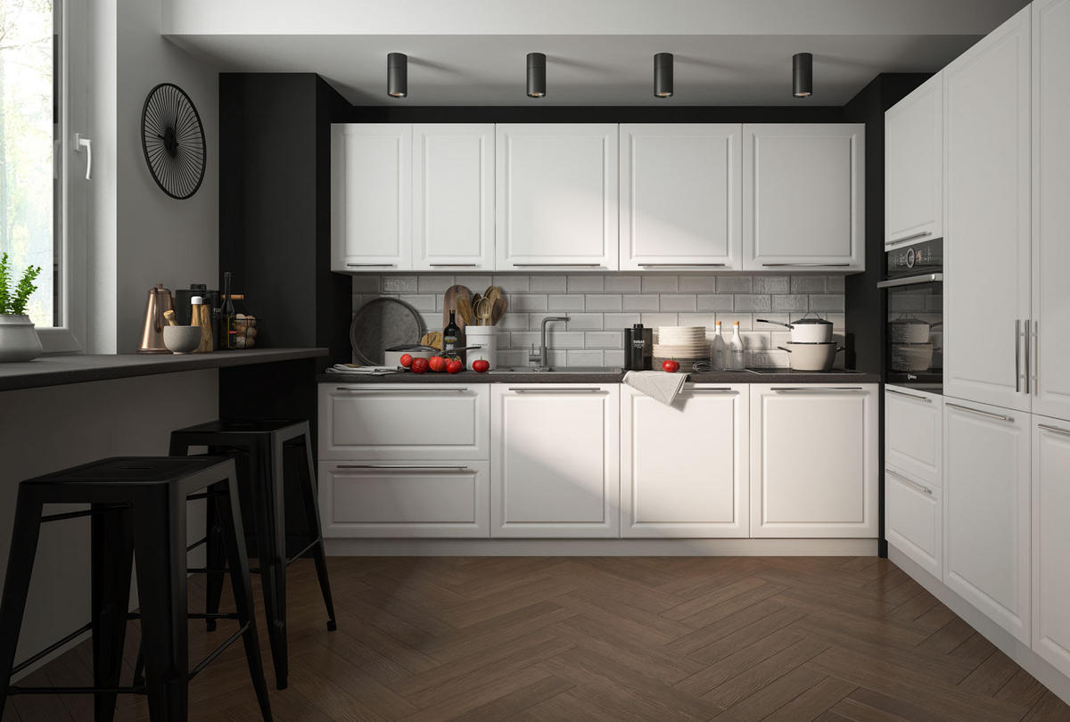 WINKELKÜCHE Pescara signalweiß matt / weiß matt 15-teilig mit Vollauszug (HETTICH InnoTech Atira)