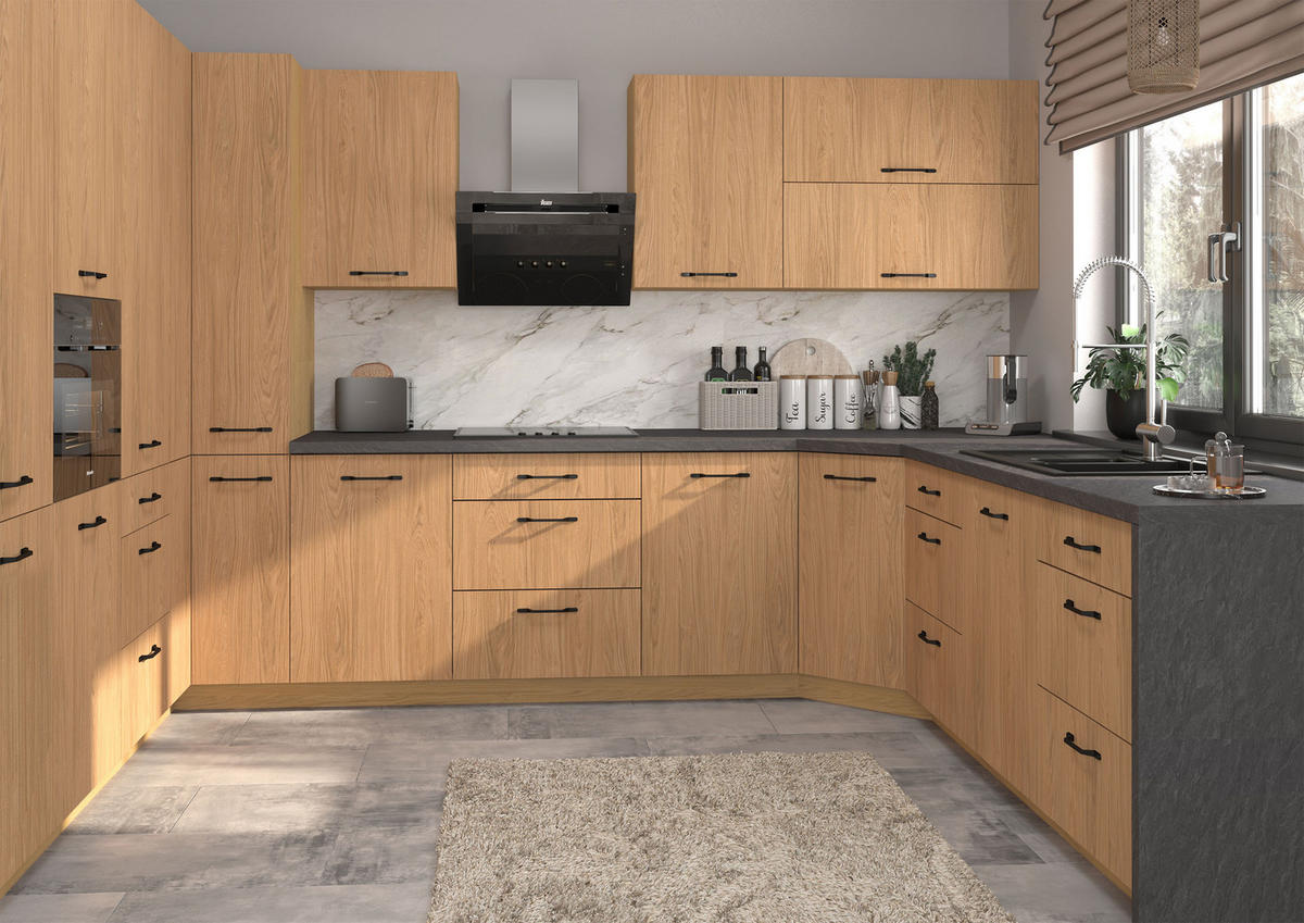 Feldmann-Wohnen KÜCHENZEILE Casella 15-teilig Eiche Artisan / Casella Eiche Natur (Blum Teilauszug)