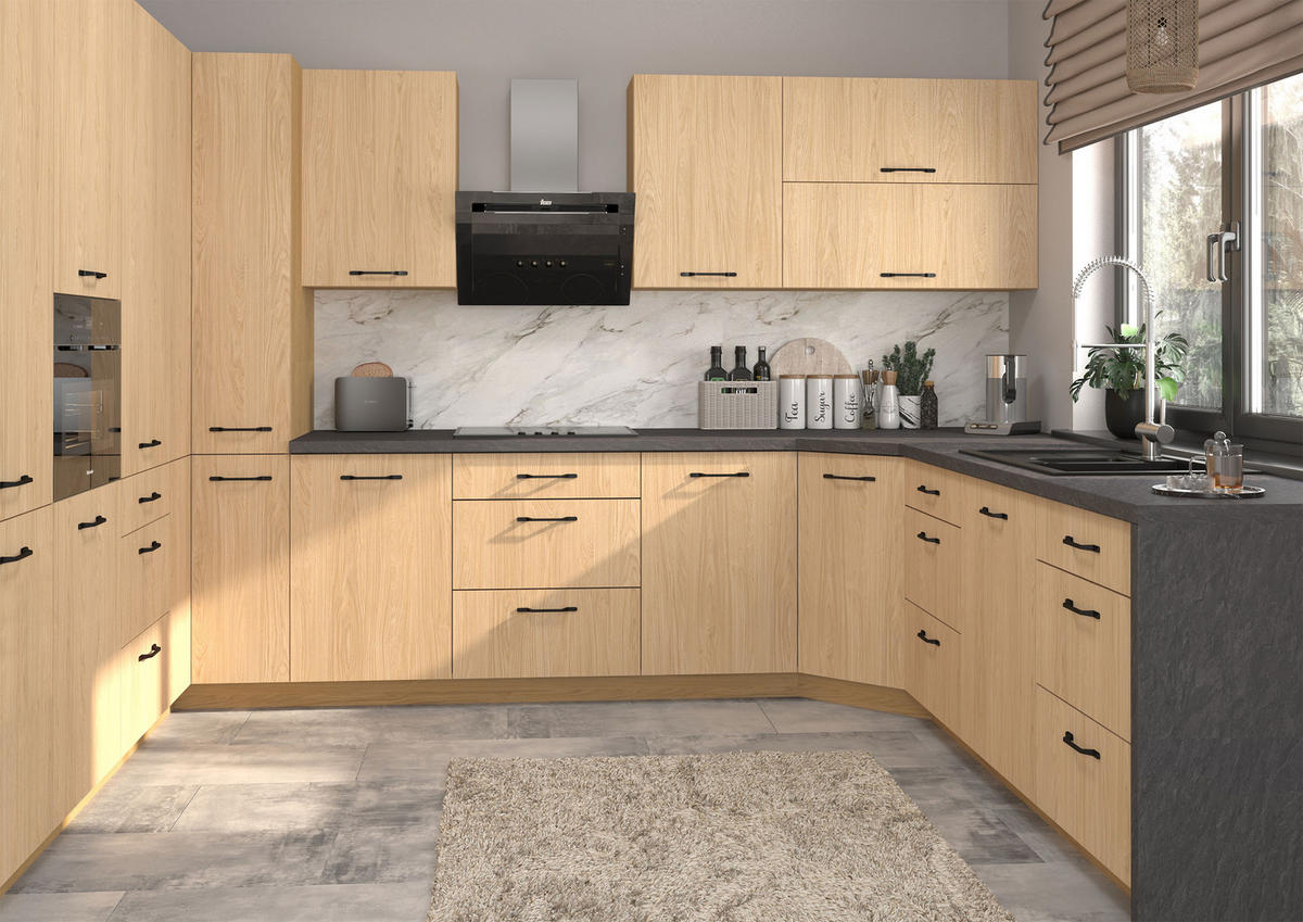 Feldmann-Wohnen KÜCHENZEILE Casella 15-teilig Eiche Artisan / Casella Eiche Natur hell (HETTICH Vollauszug)