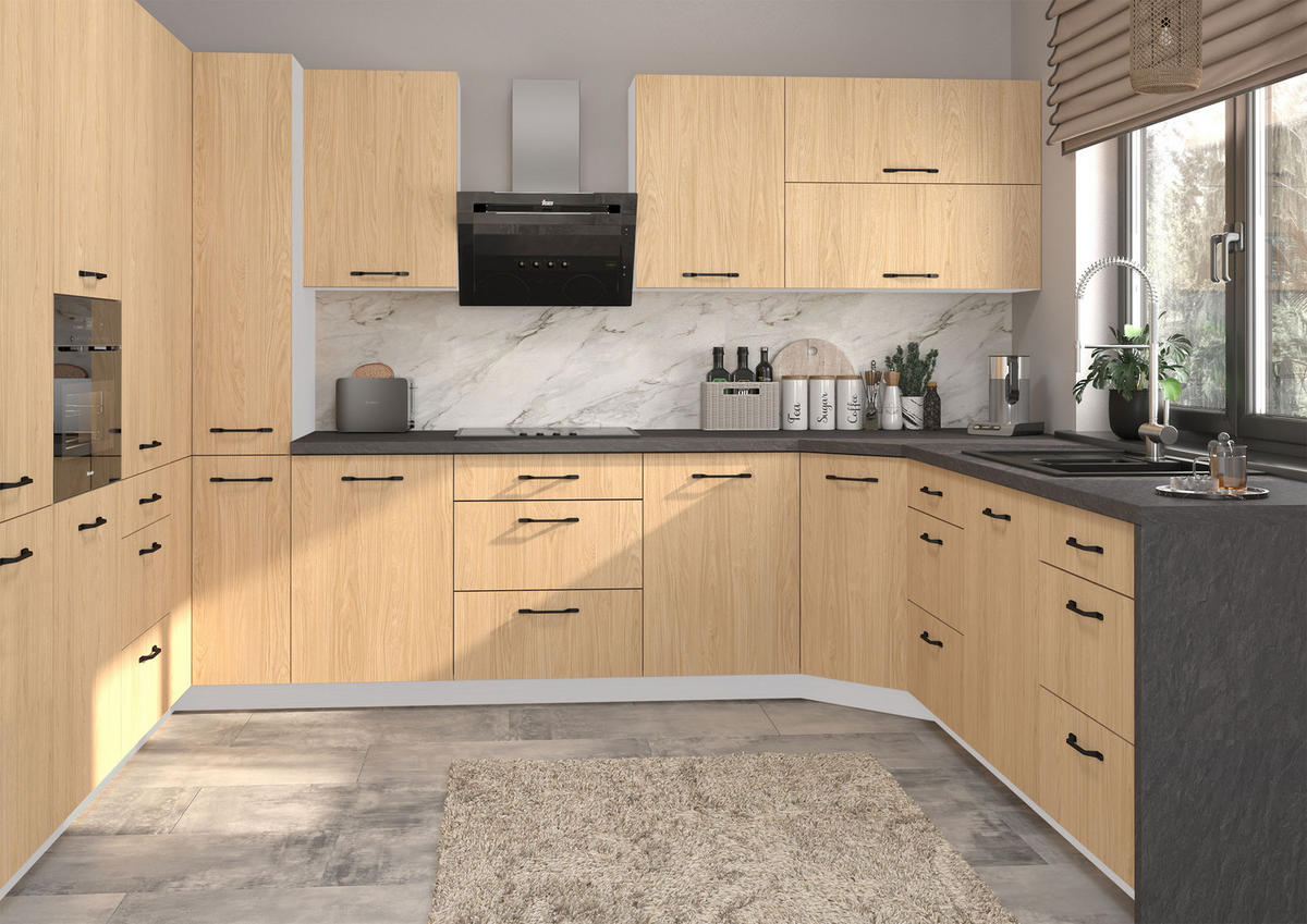 Feldmann-Wohnen KÜCHENZEILE Casella 15-teilig Grau / Casella Eiche Natur hell (HETTICH Vollauszug)