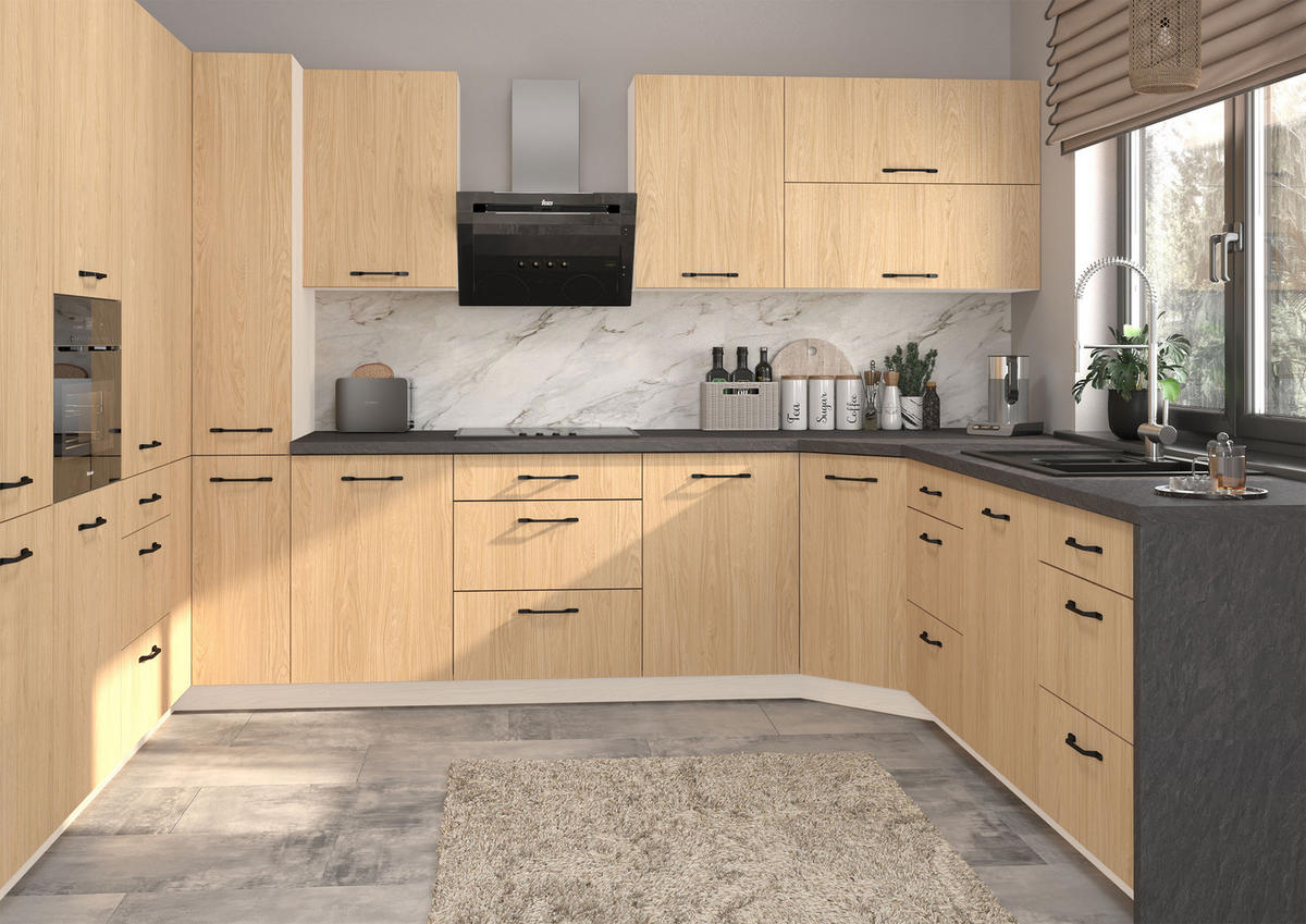 Feldmann-Wohnen KÜCHENZEILE Casella 15-teilig Weiß / Casella Eiche Natur hell (REJS Vollauszug)
