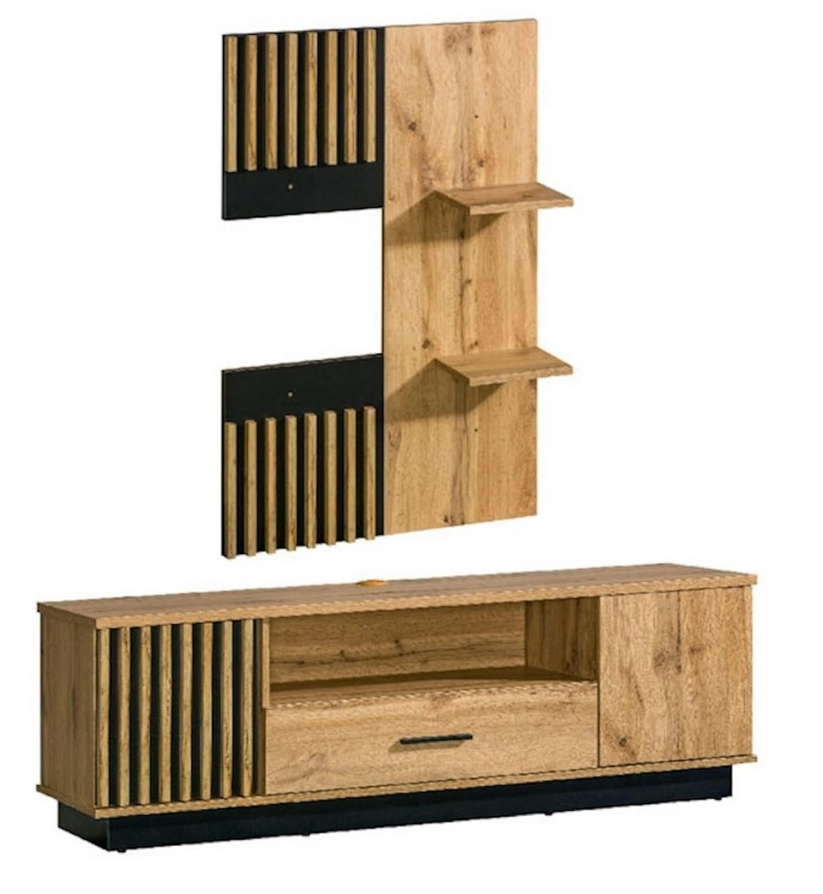 Feldmann-Wohnen LOWBOARD MIT WANDPANEEL Lamia Wotan Eiche / schwarz 155 / 40 / 157cm 2-teilig