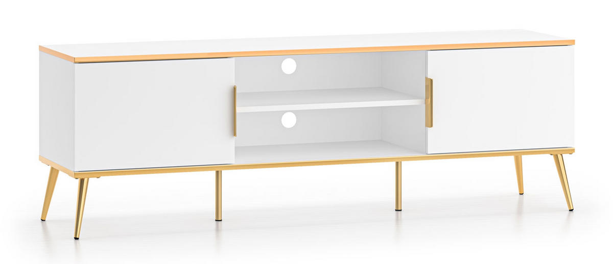 Feldmann-Wohnen LOWBOARD Viterbo Alpinweiß matt / goldfarben 160 / 40 / 53cm