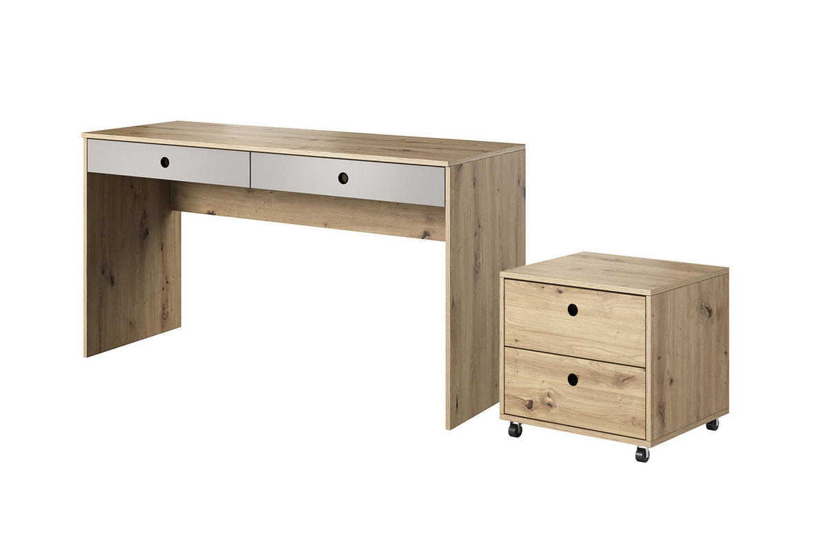 Feldmann-Wohnen SCHREIBTISCH MIT CONTAINER Kuki Bernstein Eiche / Platingrau 2-teilig