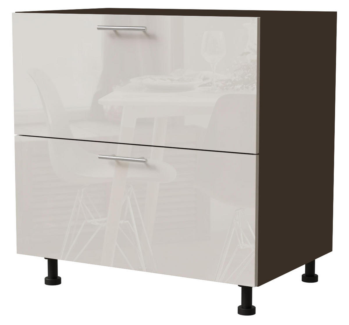 SCHUBLADENUNTERSCHRANK Brerra D2R/90 Korpus grau / Front RAL 9001 creme Hochglanz 90 / 50 / 82cm