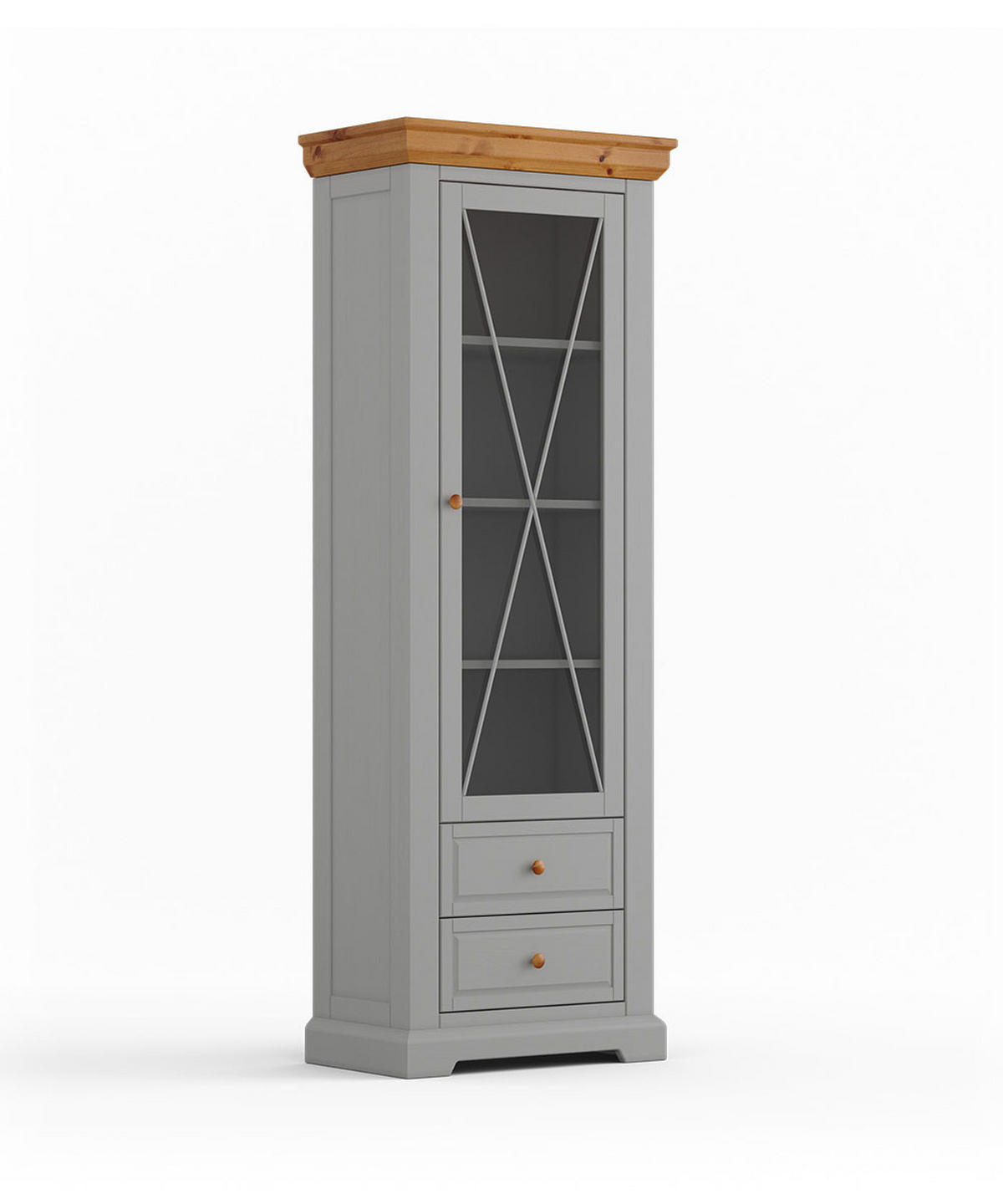 Feldmann-Wohnen STANDVITRINE Marone Elite Grau / Kiefer Natur 70 / 41 / 200cm
