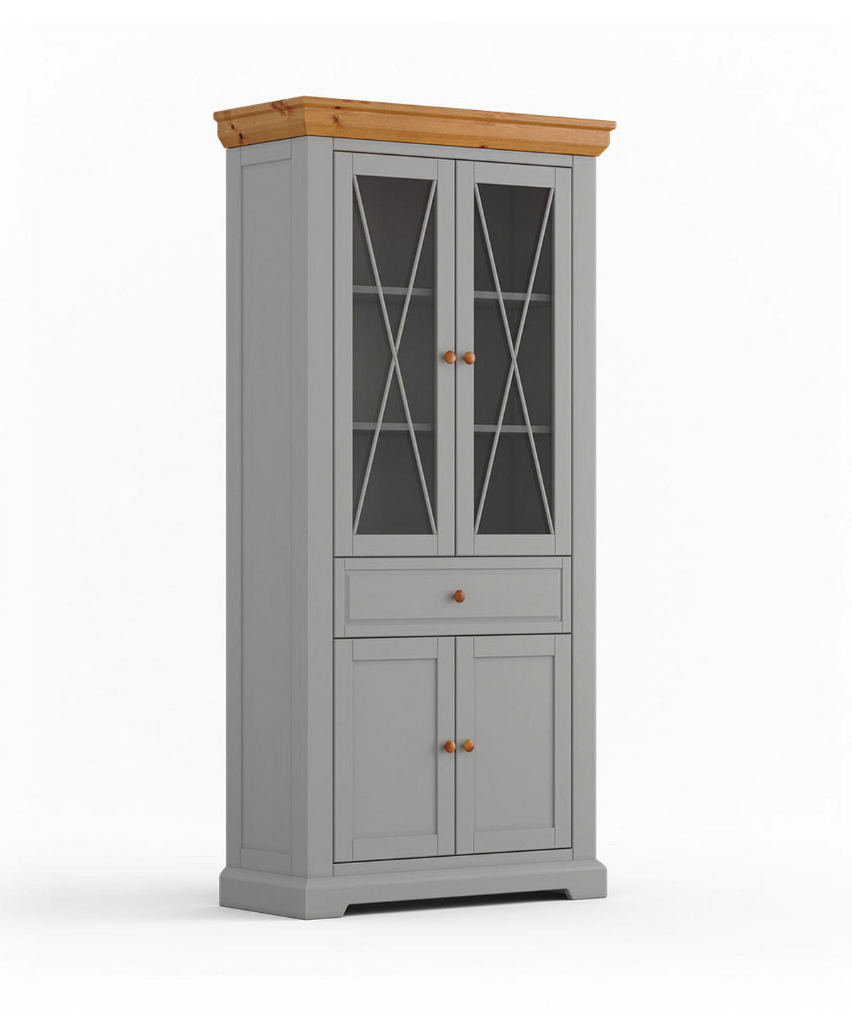 Feldmann-Wohnen STANDVITRINE Marone Elite Grau / Kiefer Natur 95 / 41 / 200cm