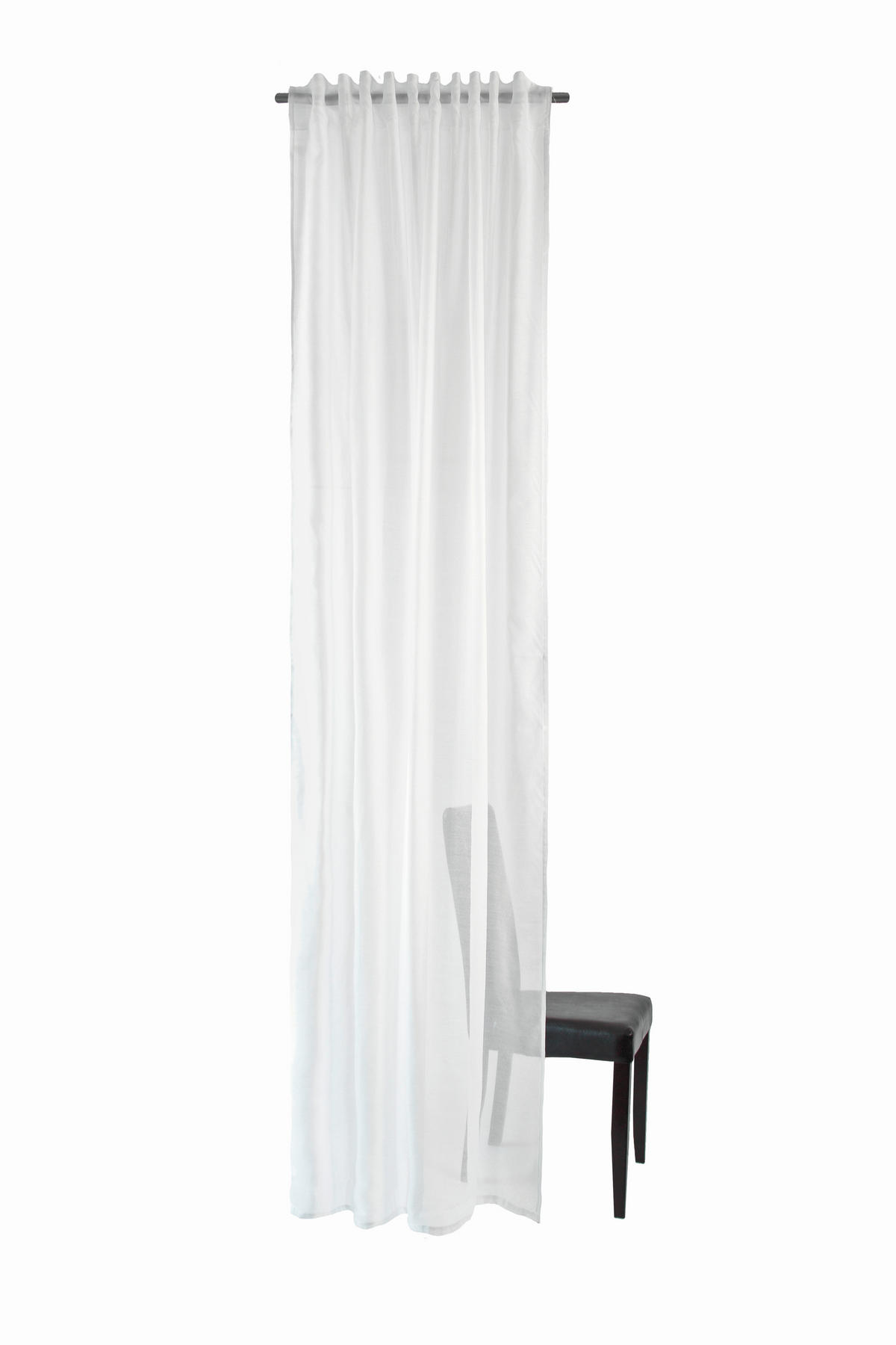 Weiß (transparent) Ihren vier Wänden eine individuelle Ausstrahlung. Harmonisches Flair kreiert der Vorhang durch sein freundliches Kolorit und das Uni-Motiv, welche die Optik bestimmen. Das Wohndetail eignet sich zum Aufhängen am Fenster, was wahlweise mithilfe der verdeckten